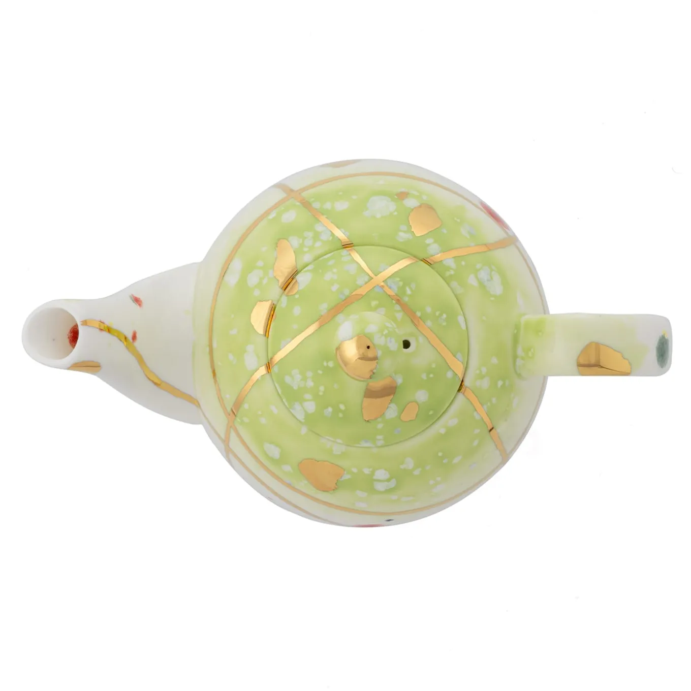 The Amelia Teapot, part of the vibrant Florida collection launched in 2023, captures the essence of the American state renowned for its colorful heritage and strong character. This piece features a striking Amelia green, reminiscent of Florida’s lush landscapes. Each piece is designed, showcasing a lightly colored center adorned with playful multicolor dots, which adds a cheerful touch. The elegant design includes delicate golden rays that wrap around the teapot.