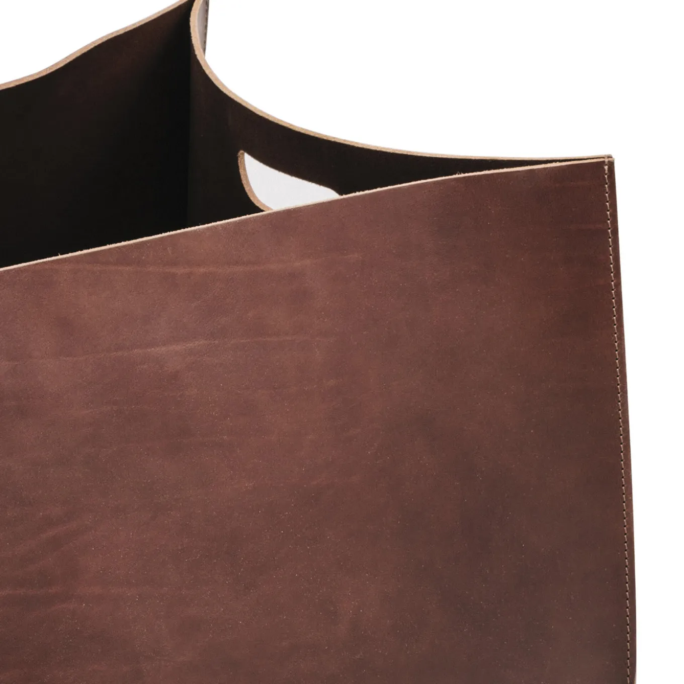 This exquisite storage basket is made entirely in saddle leather, a very fine leather that was dyed using vegetable pigments in an elegant shade of brown, producing a soft and durable texture. The loose rectangular shape is versatile and its design is timeless. These characteristics make the object suitable for any decor and a precious addition to any room in the house. Either alone, or paired with other baskets from the same designer, this object will enhance any decor.