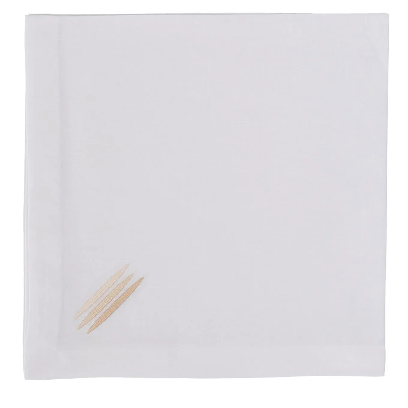 Characterized by a marvelous handmade embroidery made using three different shades of beige enhances the refined design of this set of four napkins, an exclusive and sophisticated addition to a dining table elegantly set for a special day. This exquisite set is deftly handmade of the most precious white linen.