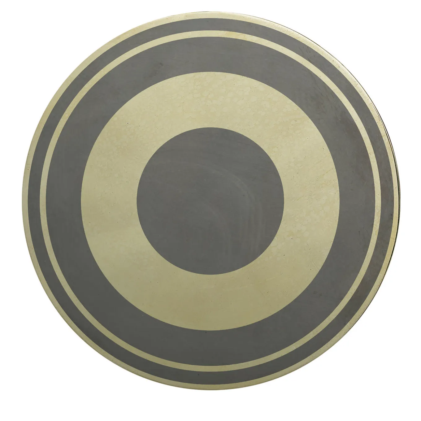 Geometric elements inspired by Aniconism define the concentric decoration of this set of six coasters. Treated with chemical reagents and protected with antioxidant layers, their singularity and authenticity are sealed by the artist’s signature on the back. The back is covered with a velvety material for optimized grip.