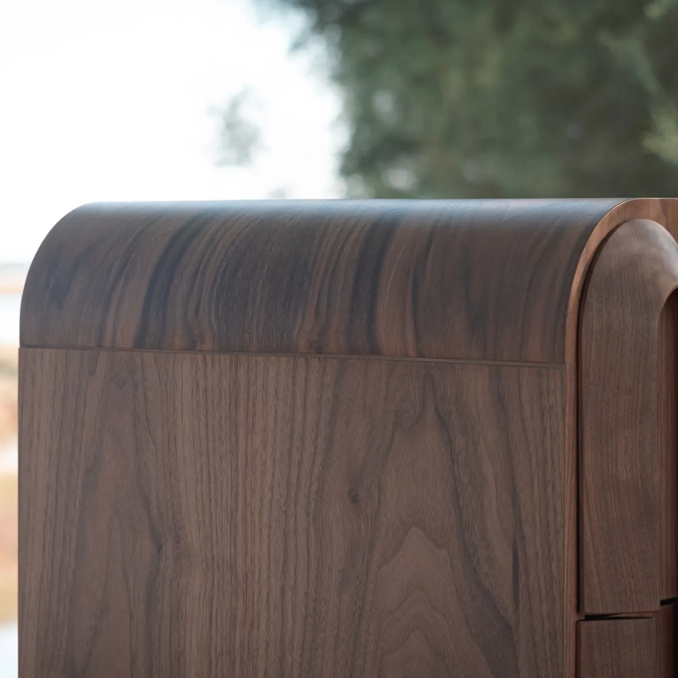 A splendid display of traditional craftsmanship and a celebration of wood, this gorgeous chest of drawers will make for a singular addition to a warm and cozy bedroom decor. Handmade of Canaletto walnut, it features seven drawers characterized by a series of textured arches in solid wood, milled with exceptional mastery.