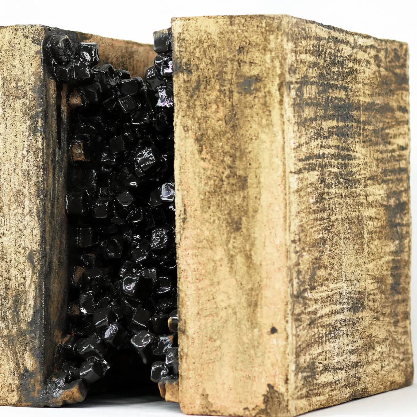 A stupendous artwork of timeless value, this sculpture is a one-of-a-kind design to complement a contemporary interior setting of refined character. Inspired by the clean geometry of a cube, it explores the idea of explosion and implosion, of a revolution of the Self. Handmade of stoneware, it features small cubes on the inside, colored in a metallic shade. Please consult the concierge for further details.