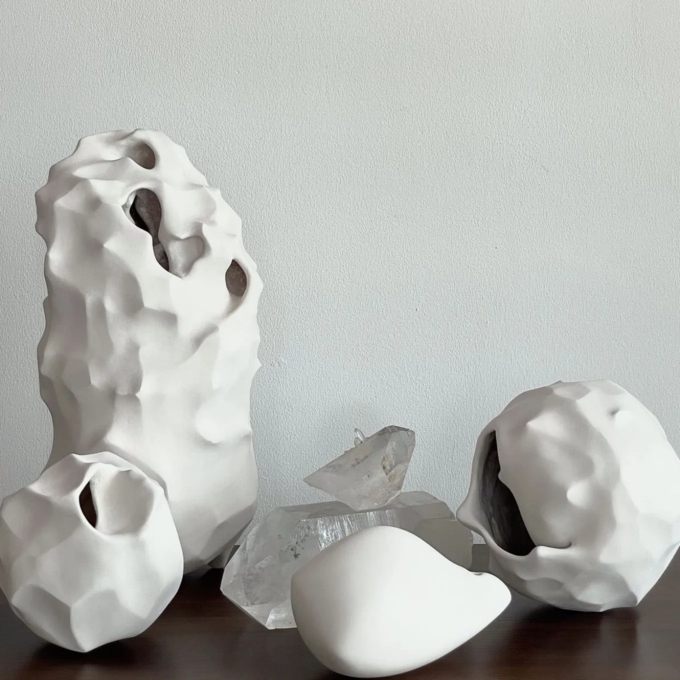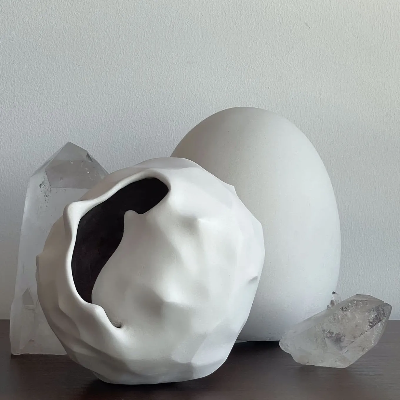In Attimo, Silvia Garau captures the essence of a fleeting moment with its irregular opening and flowing contours. The deep shadows contrast with the smooth, layered white surface, finished with fine abrasives to create a tactile, mineral-like texture. As part of her signature process, the sculpture began as raw clay, shaped to evoke a sense of movement and time. Inspired by Rome’s timeless beauty, Attimo represents the delicate balance between transience and eternity.