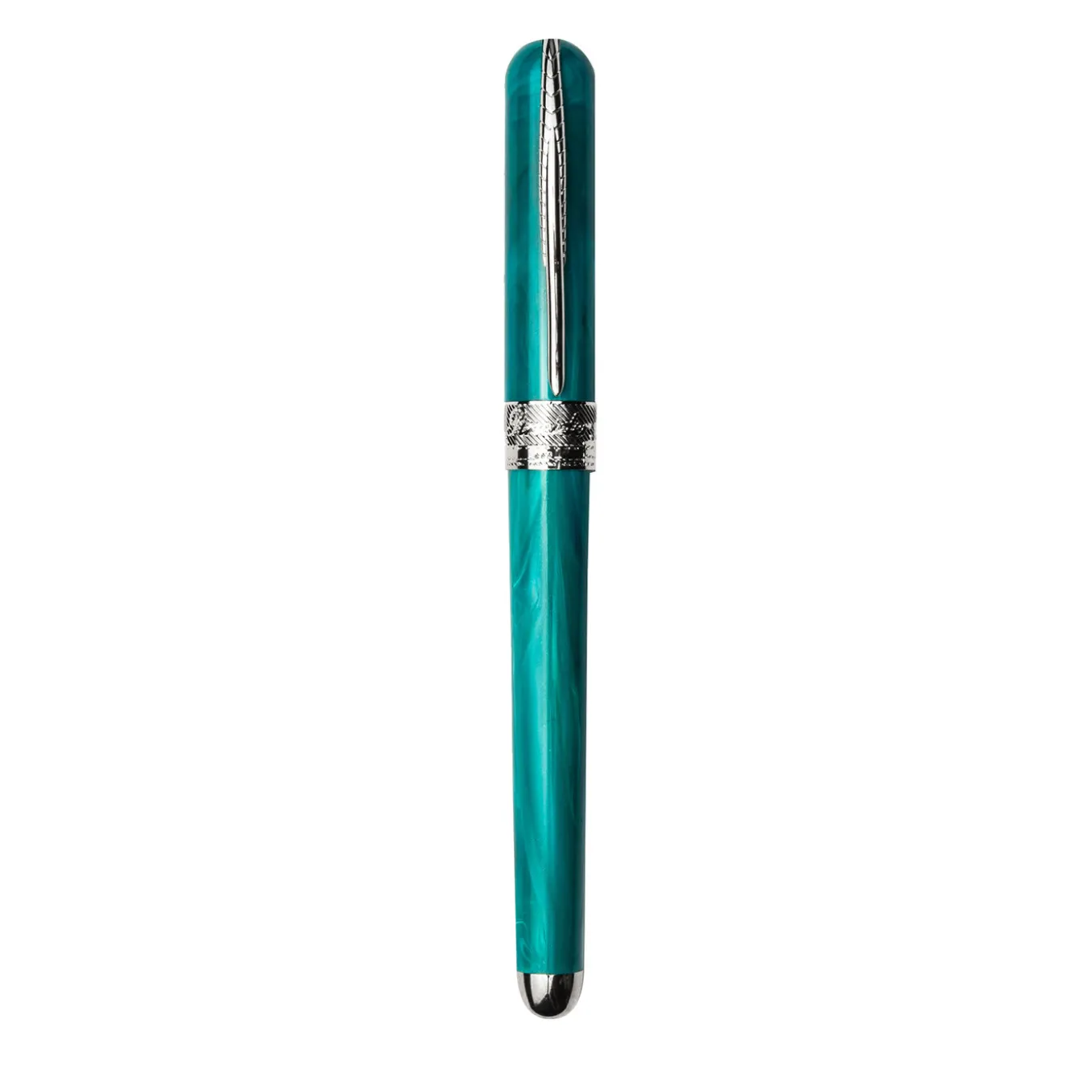 Made of UltraResin – a material developed by Pineider combining nacre and resin and close to unbreakable – this fountain pen is crafted using a 3D technology allowing to obtain an interlocking system devoid of glues. The feather-shaped clip in marine steel and the soft-close cap lock merge with details in palladium 0.2, the central band displaying a minutely engraved skyline of Florence sealing its luxe look. Please inquire with the Concierge for color, filling (cartridge or converter), and N°6 steel nib size options available.