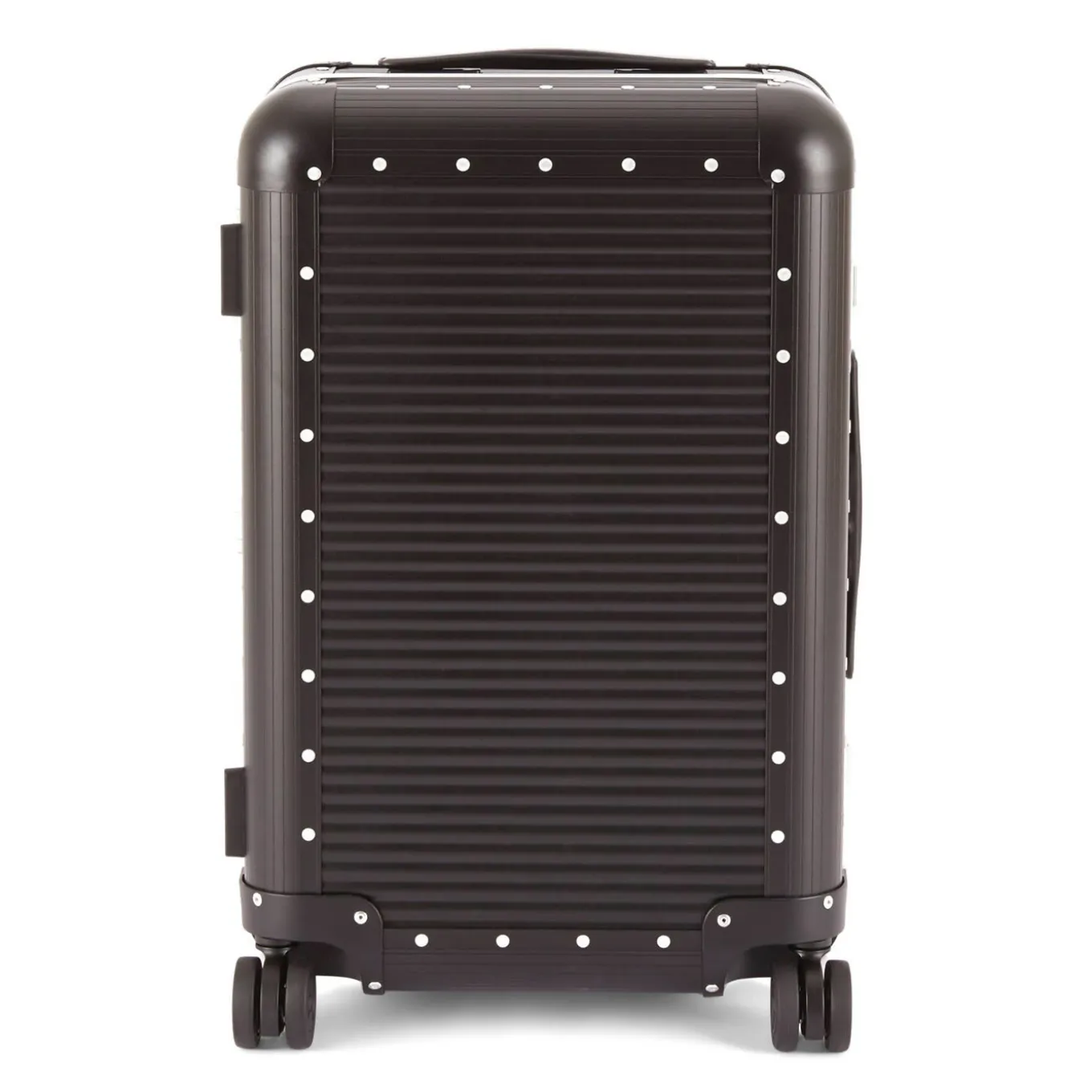 Exclusively Made in Italy, the Bank suitcases are inspired by the olden day trunks revised in a modern way. The aluminum shells, 10 microns (?) thick, combined with the special Butterfly locks, guarantee protection and resistance to the elements. The dual wheels ensure ease of transport and the interior with compartment dividers and leather details provide a perfect organization of the content.