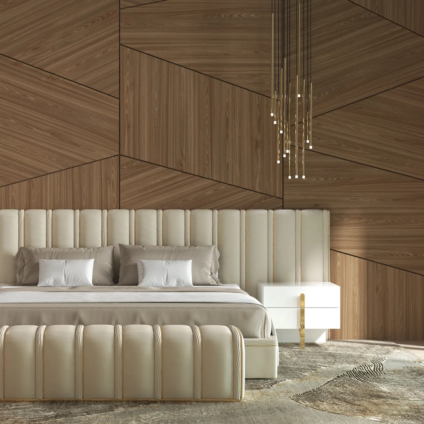 King size bed featuring a generously sized 180×200 cm frame complemented by an extended velvet-covered headboard with a wave-patterned design. This medium-large piece combines refined, tailor-made aesthetics with a minimalist style that enhances modern bedrooms without overwhelming the space. The wide headboard provides added comfort for relaxation, making it ideal for reading or unwinding at the end of the day. Mattress, bed linen and decorative pillows are not included.