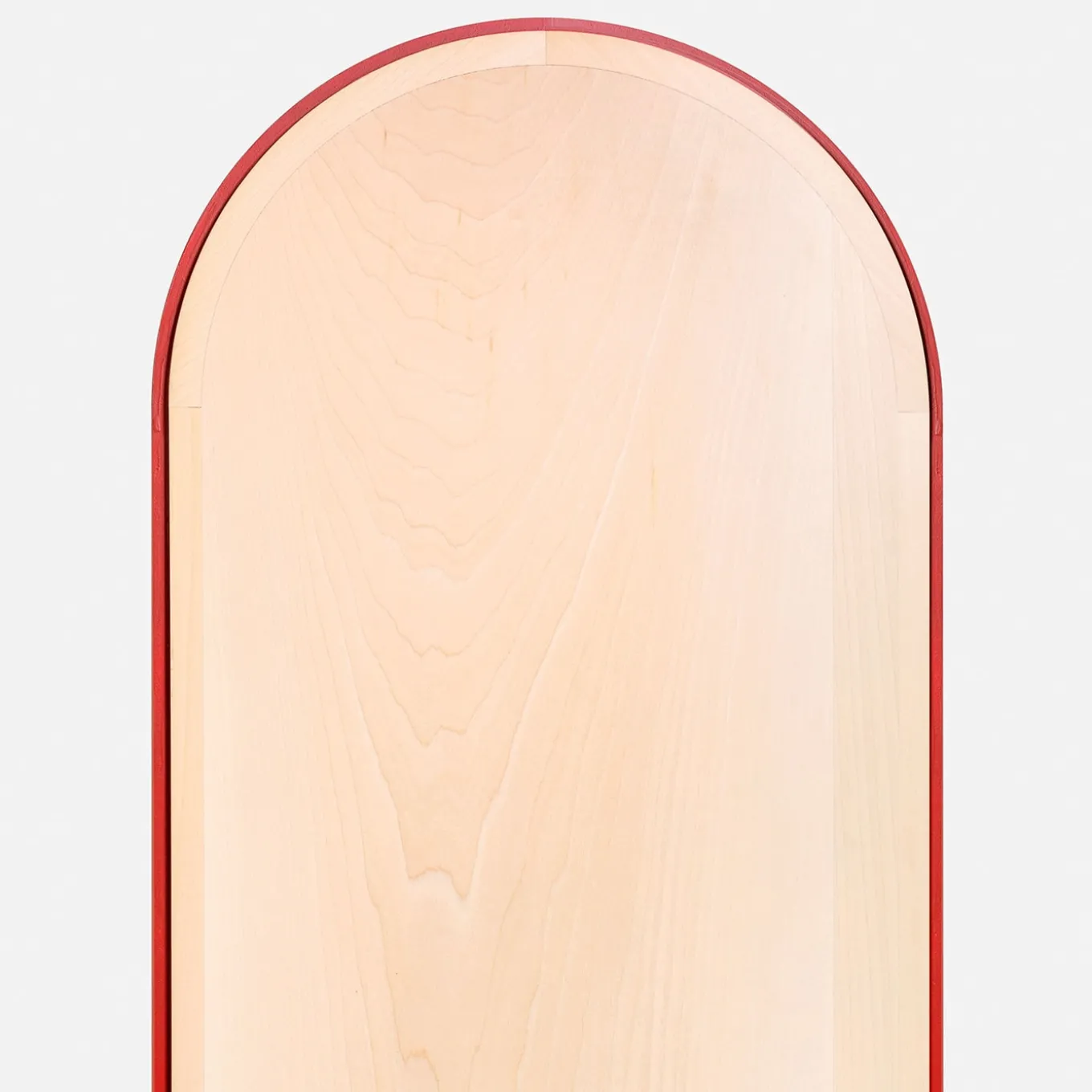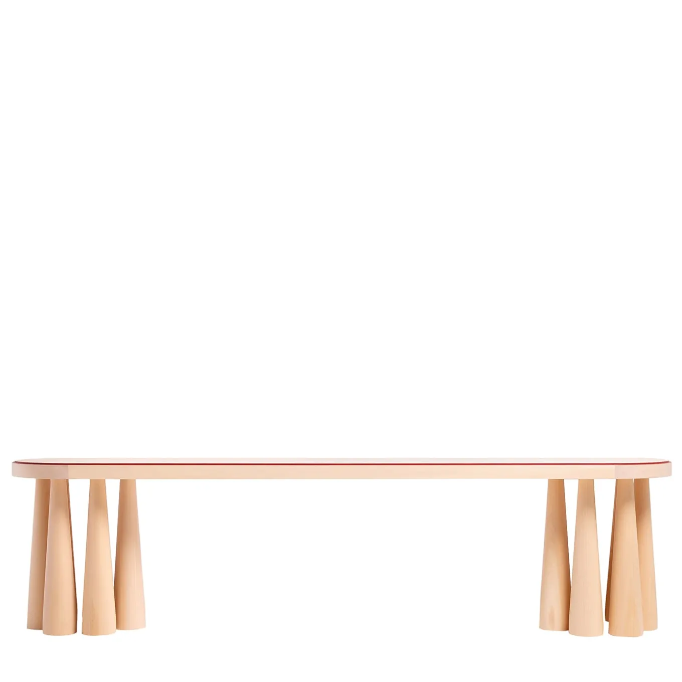 The Bogdan collection is born from a single trunk of linden wood, generated by one specific element. A mono-materic piece of furniture, characterized by a distinguished color line that defines its perimeter and shape. The cones at the base, arranged in circle to create a single visual element, support the top that is configured as the unifying part of what raises it. The colored milled-edge ribs, embellish and complete the top, creating, together with the legs, plays of chiaroscuro all around.