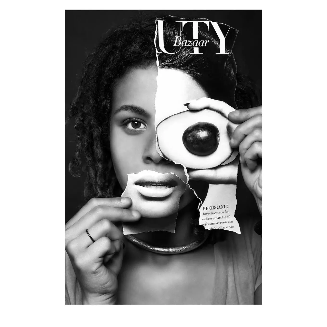 Clippings torn from fashion magazines such as Vogue and Harper’s Bazaar and superimposed on real female faces inspired the refined series this shot belongs to. Concretely showing the contrast between models on covers and real faces seen in person, it is an invitation to embrace an authentic conception of beauty. More versions with likewise different faces are available in the Artemest catalog. Contact the Concierge for the frame’s availability and pricing.