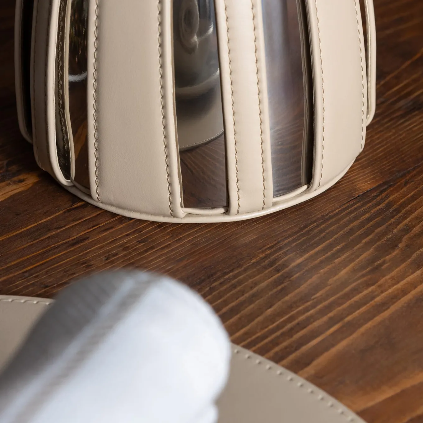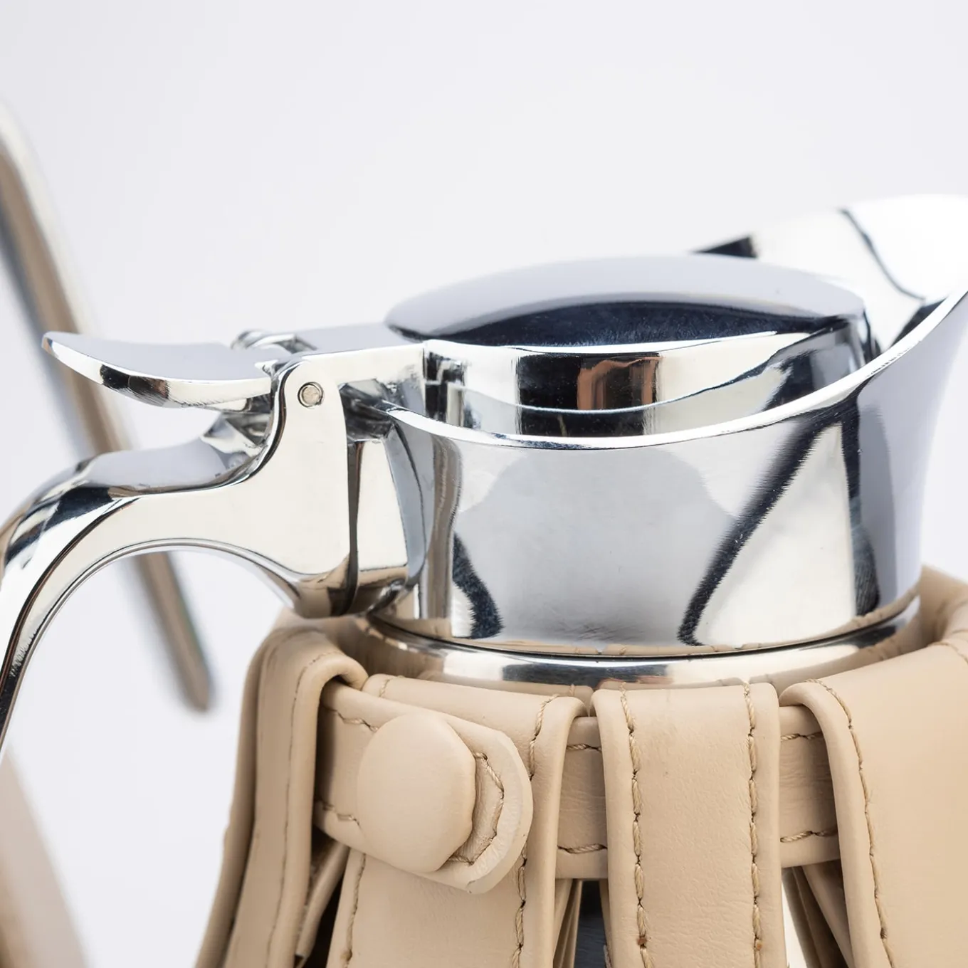 The high-end thermal carafe is the result of a perfect balance between polished steel and leather, making it an impeccable choice for those seeking the utmost in elegance. Additionally, the carafe is equipped with advanced thermal technology to keep beverages at the desired temperature for an extended period, completing the blend of beauty and functionality. Please, ask the Concierge service for further information.