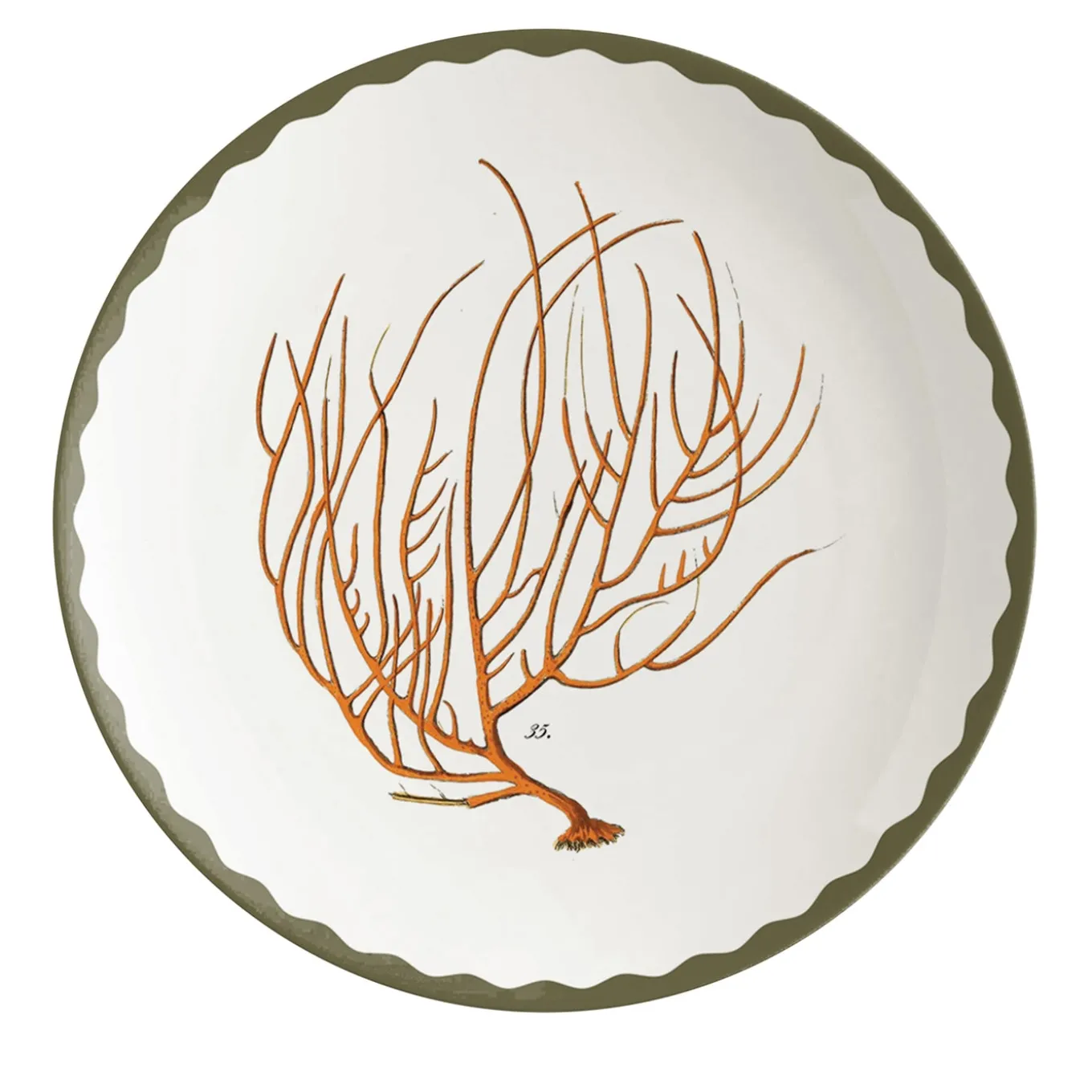 The perfect pair to the set of two dessert plates from the Corals series of the Cabinet de Curiosités Collection, this set of two fruit plates boasts a clean and refined design distinguished by a wavy green-colored rim and a representation of a particular coral species. Handcrafted of ceramic, its sleek flair will elevate the look of any dining table.