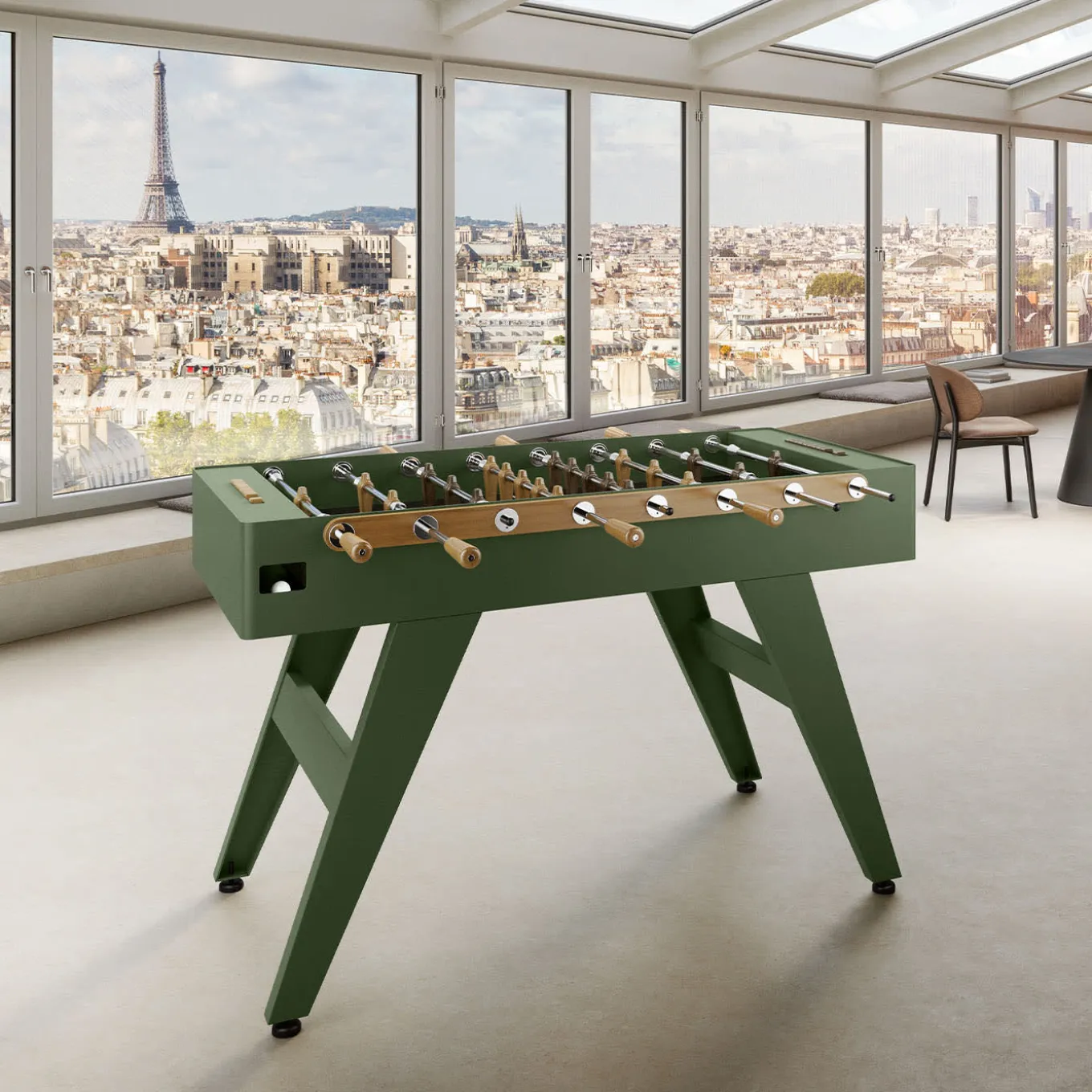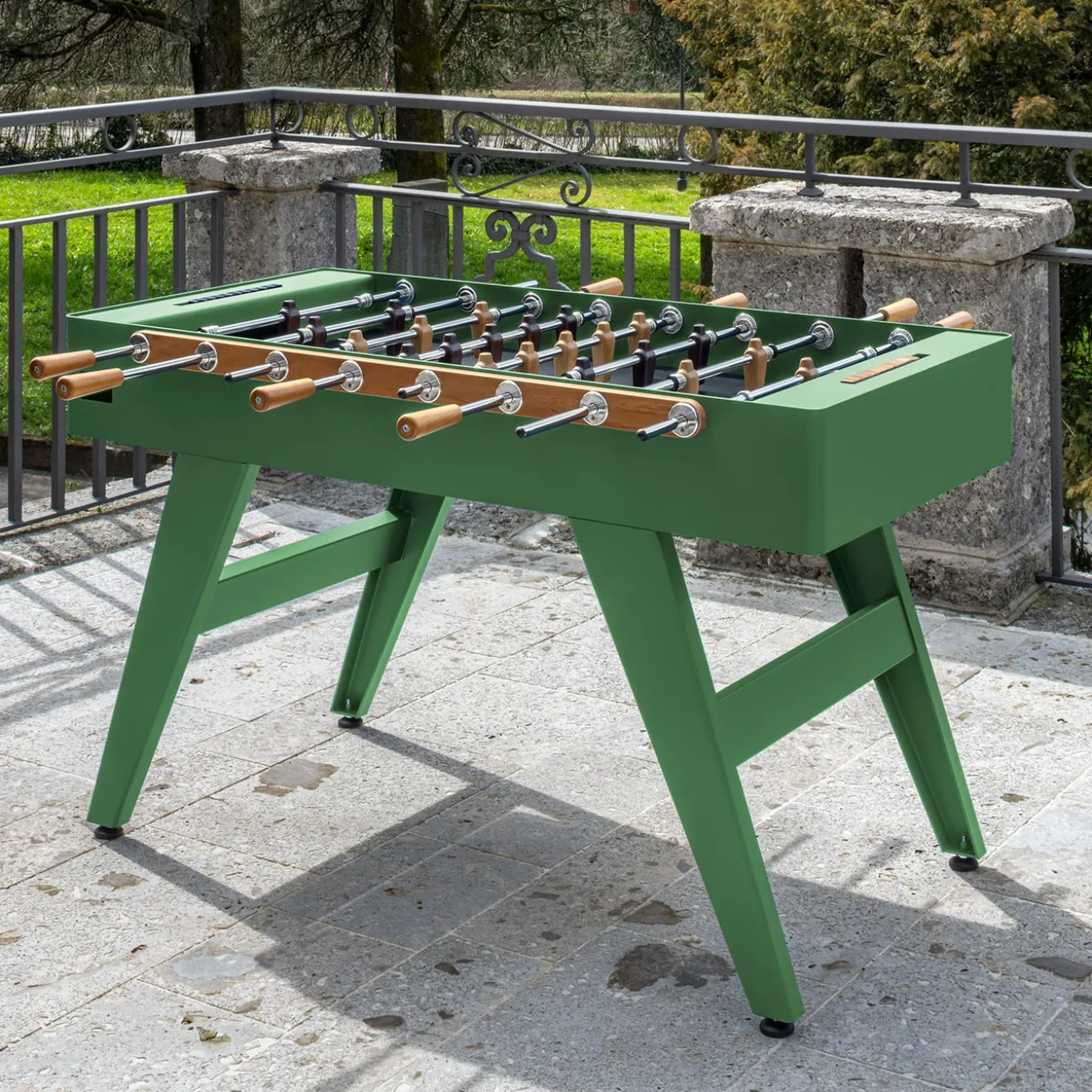 The Calciobalilla Boss Foosball Gaming Table is a masterpiece of luxury gaming, seamlessly blending robust metal with warm iroko wood for a bold post-industrial aesthetic. Designed for both indoor and outdoor use, this statement piece features a sleek green finish with a black playing field, making it a striking addition to any space. Built for durability, the table’s playing figures, score counters, and handles are crafted from premium iroko wood in a green finish, combining resilience with refined elegance. The BOSS table is available in multiple color variations in the Artemest catalog and can also be customized in bespoke colors upon request. Please contact the Concierge for more information.