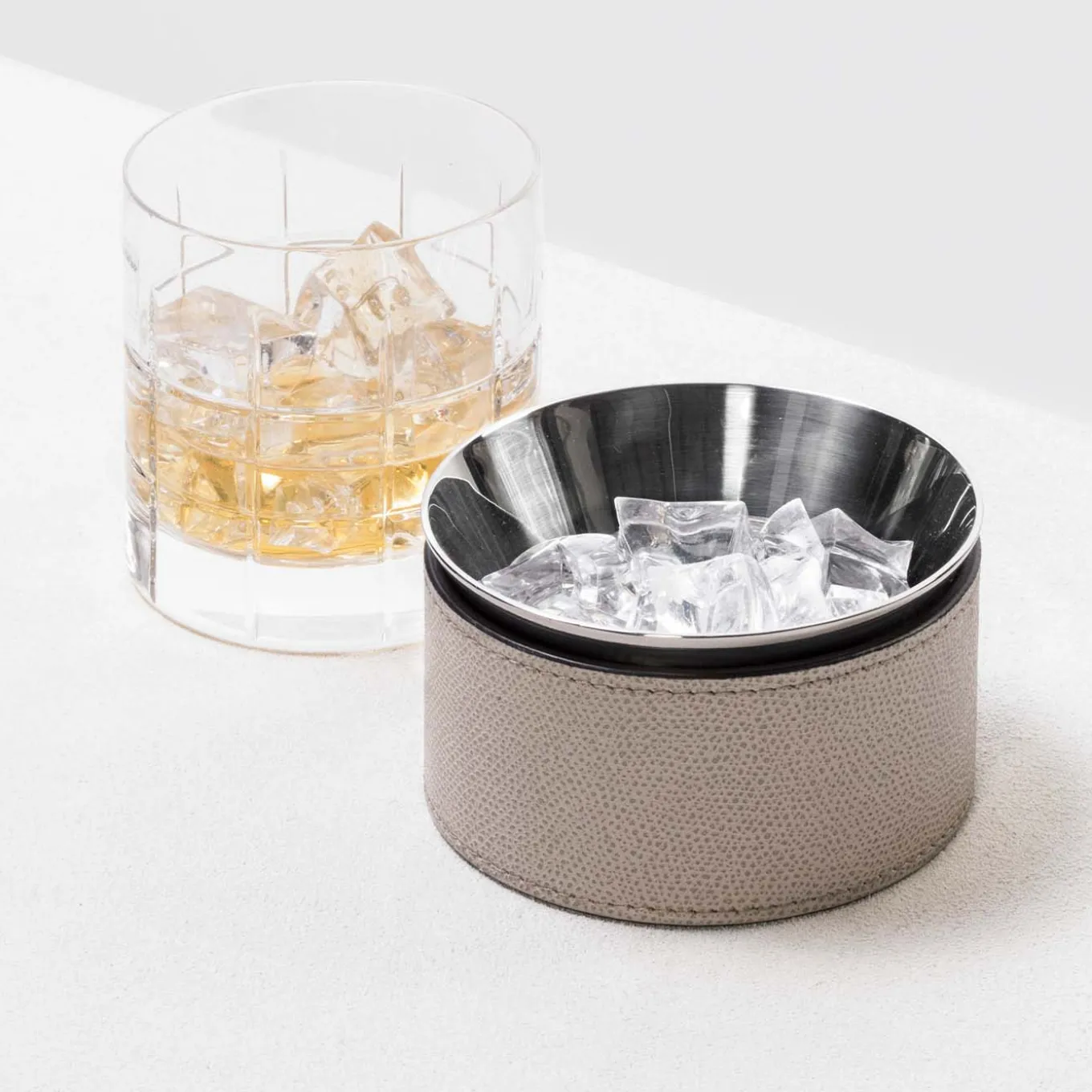 Double-wall stainless steel bowl with removable leather cover. Perfect to accommodate cocktail nibbles, snacks, and ice cream or as a sugar bowl. Once removed from the leather cover, the bowl is dishwasher safe.