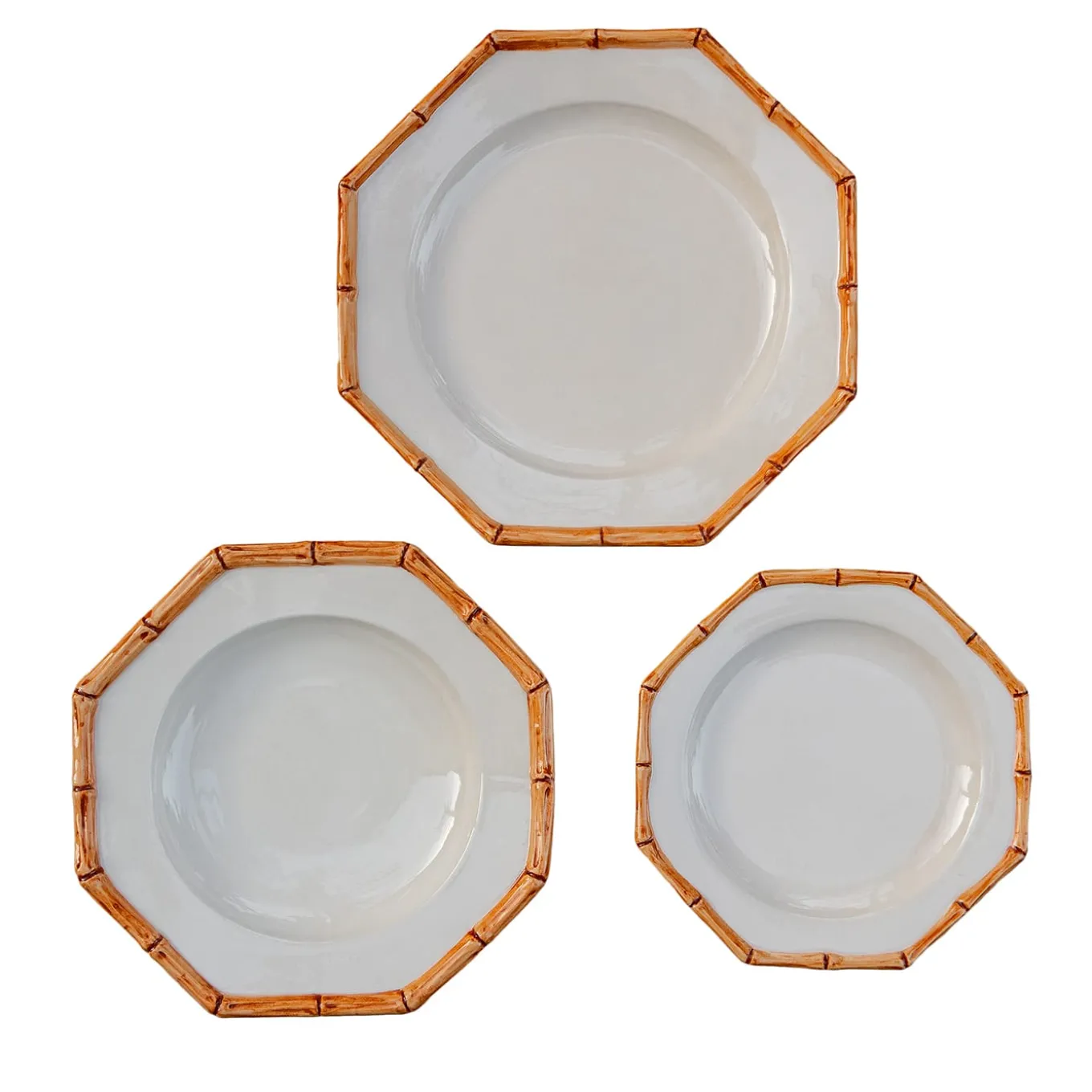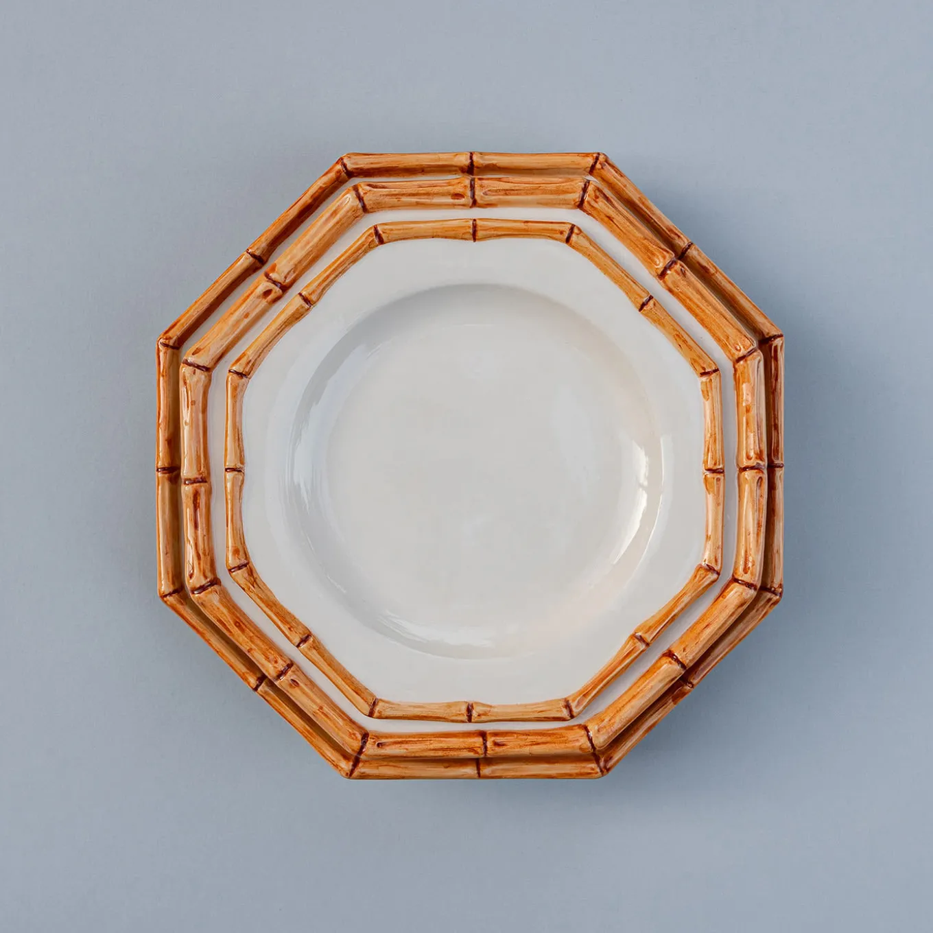 Cabane bambou is an elegant dishware collection inspired by bamboo stalks, characterized by its sophisticated edges. Designed for year-round use, Cabane Bambou dishware infuses natural inspiration and subtle refinement, ensuring a dining experience filled with understated elegance. Dinner plate: diameter 26 cm; soup plate: diameter 24 cm; dessert plate: diameter 20 cm.