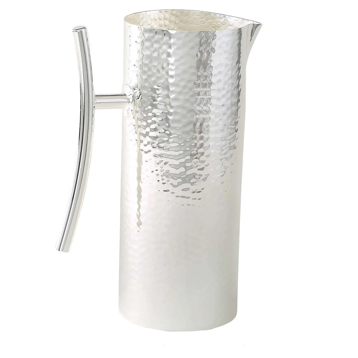 Revisiting a classic tableware staple with modern sensibility, this superb carafe is defined by the dynamic surface. Silver-plated with a copper core, this splendid piece has a hand-hammered finish and a T-shaped handle with a striking curve that allows for an easy grip. This carafe will make a flawless addition to any table on any occasion. It holds a maximum of 1.5 liters.