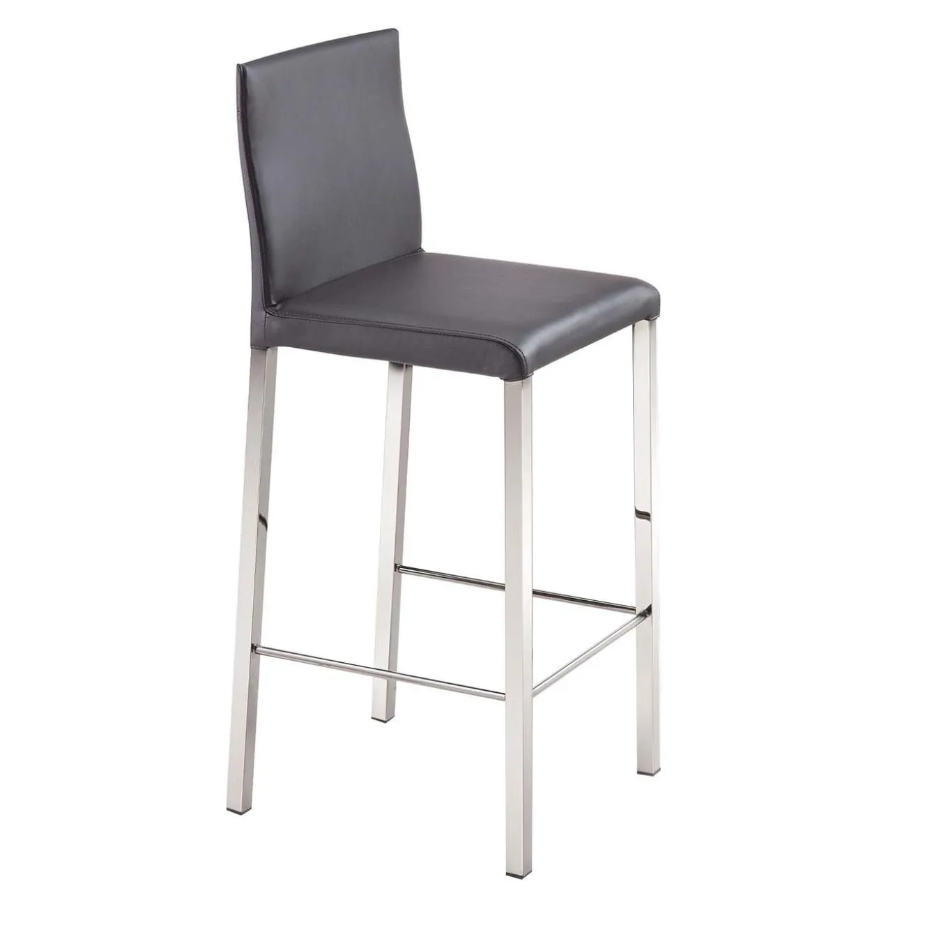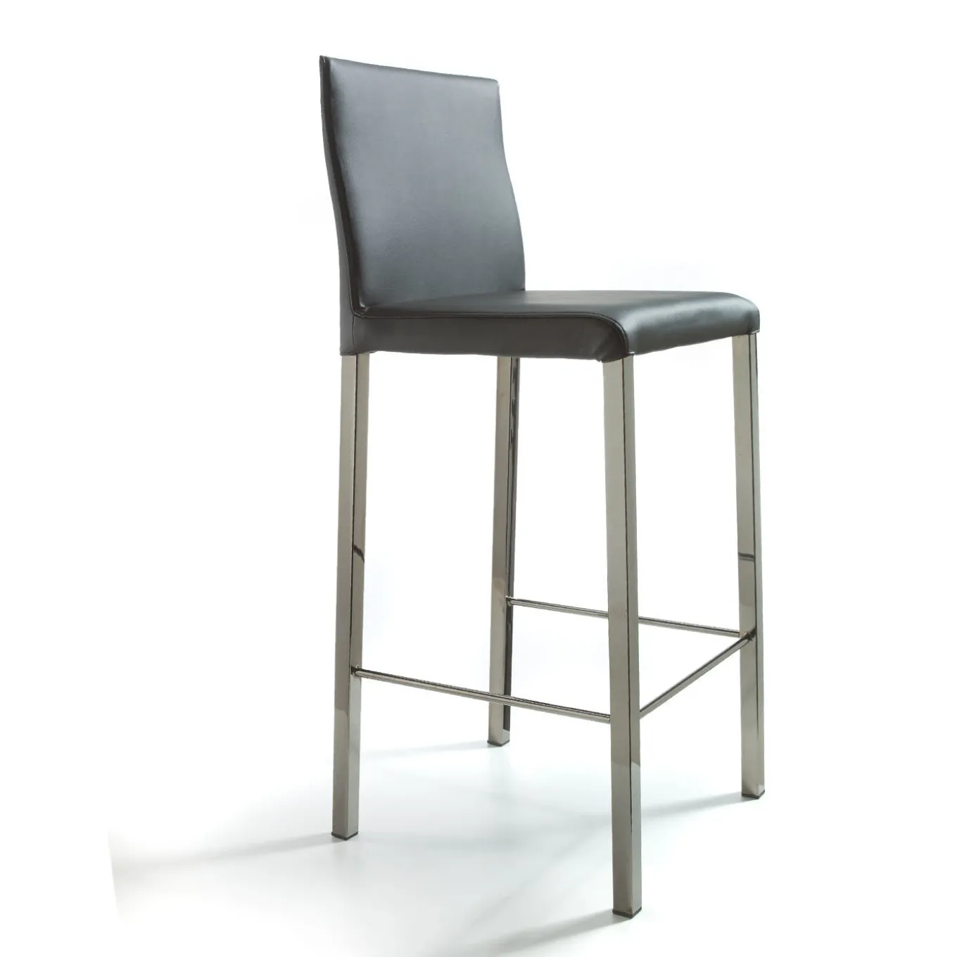 This exquisite stool embodies the elegance of simplicity, marked by clean and essential lines fashioned of refined materials. Resting on a slender chromed metal structure, it features an ergonomic seat with a backrest upholstered with a gray leather cover, available in a wide range of colors and other materials, please ask the Concierge for details.