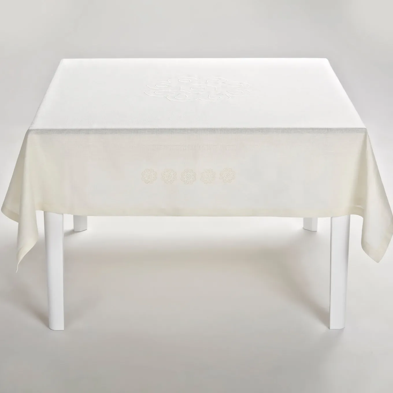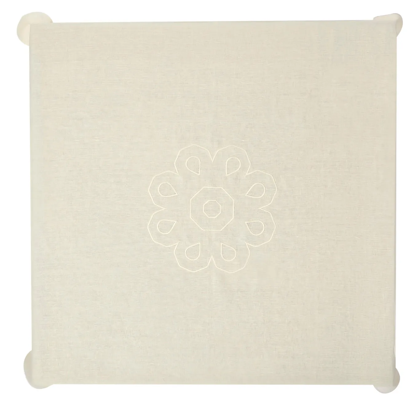 Deftly sewn and embroidered by hand by Apulian master artisans, this limited-edition tablecloth is fashioned from Masters of Linen certified linen. The tone-on-tone Mako cotton embroidery depicts the layout of the Swabian Castle located in Andria, Apulia, linked to the historical figure of Frederick II. The one-off piece is available in different sizes, please inquire with the Concierge for details and pricing.