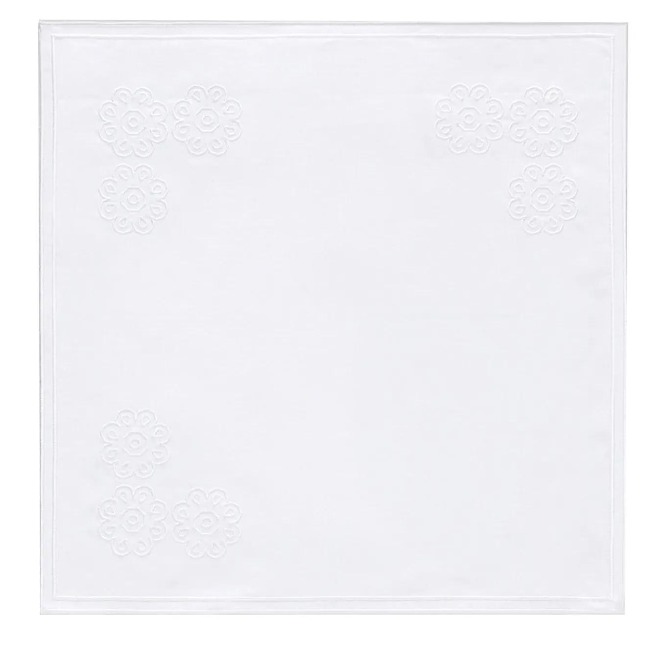 This limited-edition set of two napkins in Masters of Linen-certified white linen flaunts an exceptionally refined look that well adapts to luxurious private or hospitality contexts. Its artisan tone-on-tone embroideries in Mako cotton are minute, stylized reproductions of the layout of the Swabian Castle located in the Apulian town of Andria, once owned by the Roman Emperor Frederick II. Please ask the Concierge for the pricing of the six-piece set.
