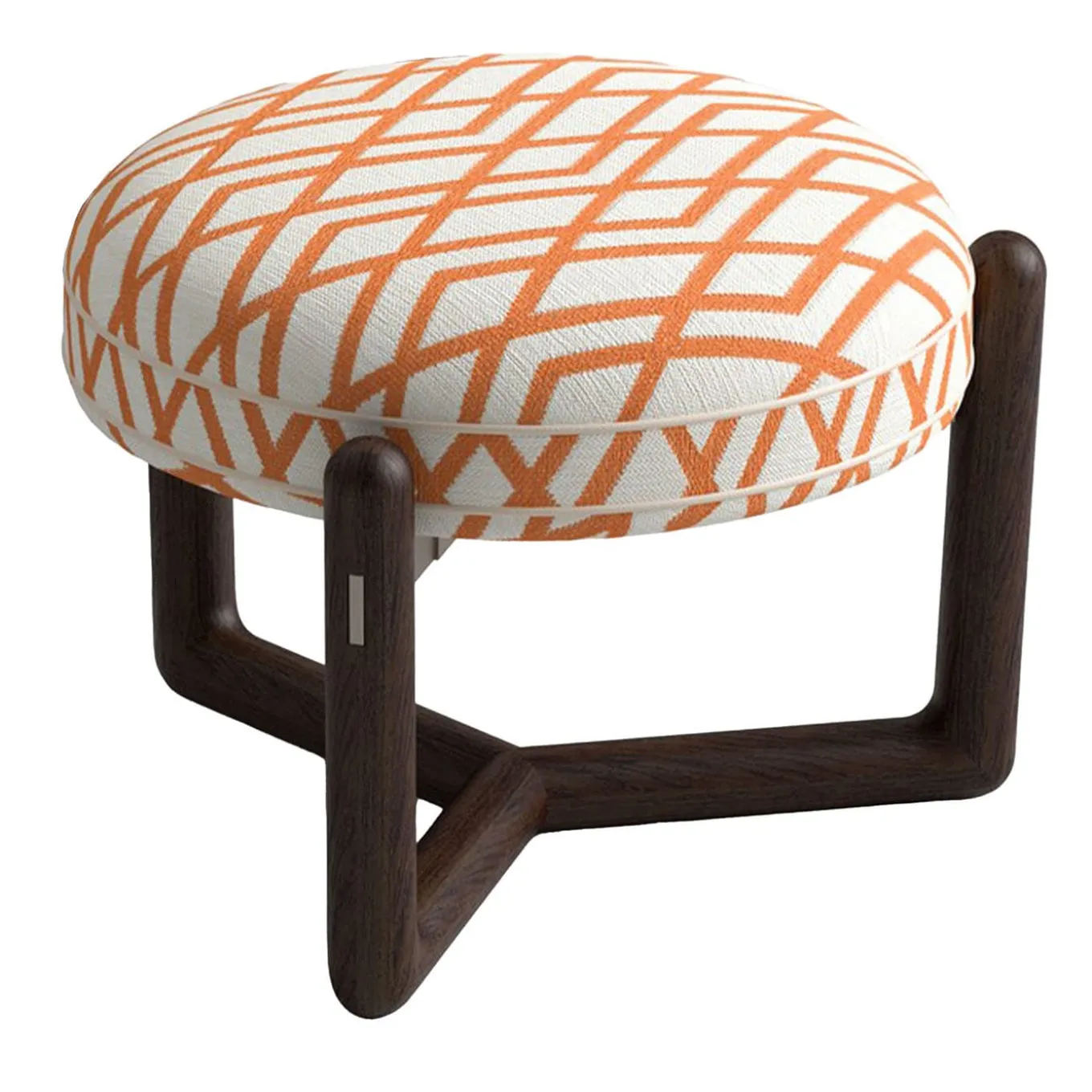 Add a touch of sophistication with the elegant pouf. It features a painted iroko structure complemented by sleek satin steel metal details. Upholstered in fabric, it offers both comfort and style. The pouf is finished with refined leather piping, enhancing its modern appeal. Perfect for contemporary interiors, the pouf combines high-quality materials and design.