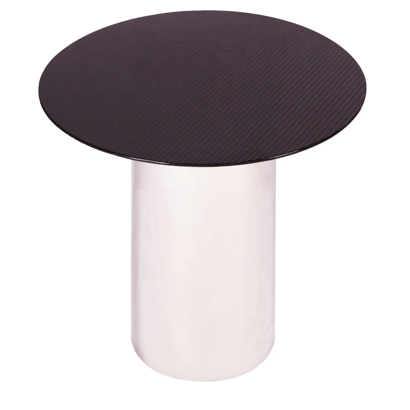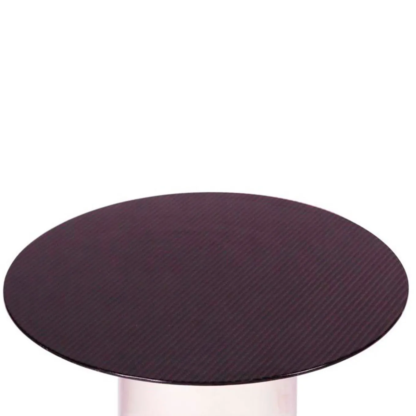 A strikingly innovative design, this coffee table will enrich both traditional and contemporary decors with its simple yet refined silhouette. This piece features an exquisite round top fashioned of carbon fiber finished in a polished hue, reminiscent of marble, and superbly enhanced by the luminous charm of the cylindrical steel base structure. Ideally paired with a smaller or taller coffee table for a dynamic look.
