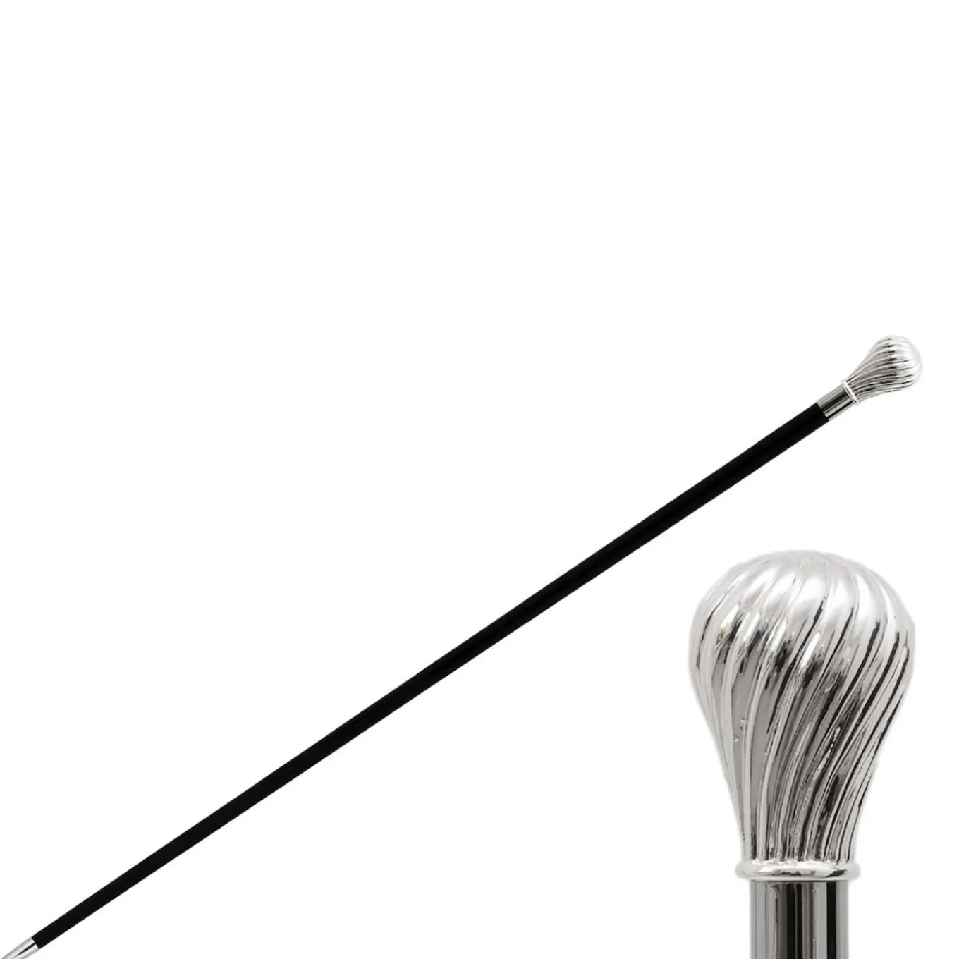 This timeless cane features a 92-cm long wooden shaft that ends with a brass tip with rubber. Handmade in Italy, this classic cane features a silver plated resin handle in the shape of a knob that comfortably fits in your hand.