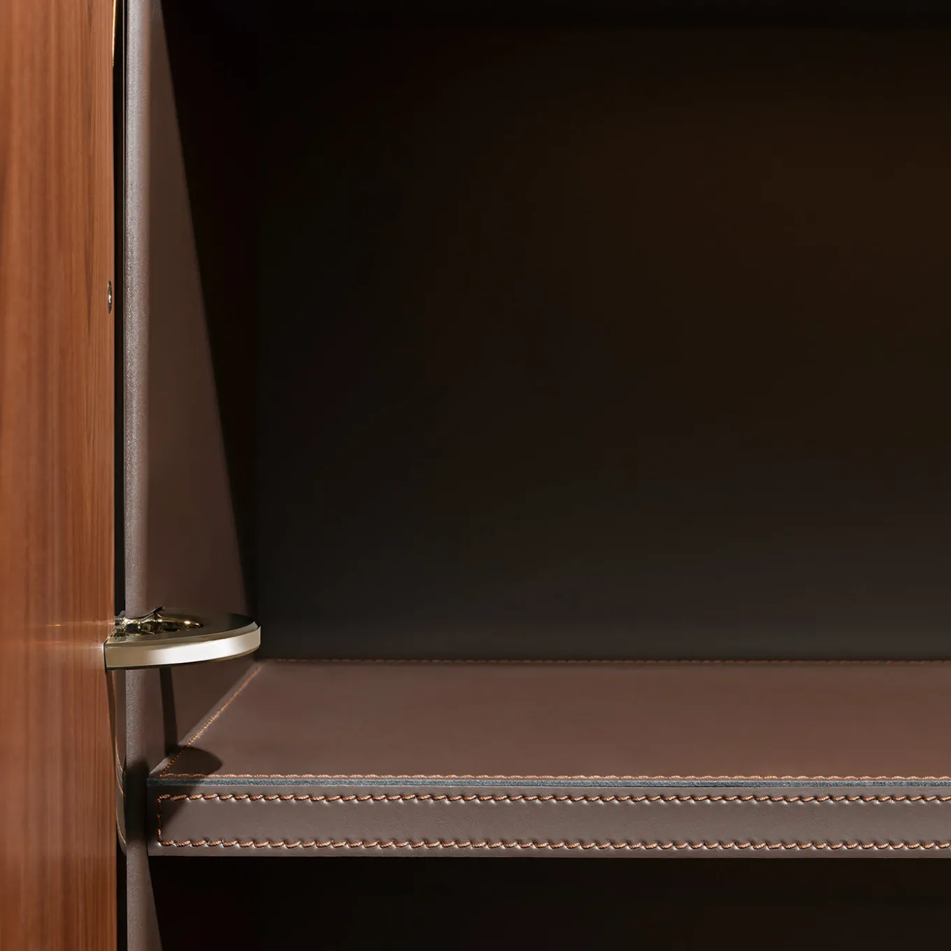 This sideboard is part of the Clockwork collection designed by Lanzavecchia and Wai. Its unique silhouette and enlarged details celebrate the functional elements that are kept hidden in traditional furniture. Hinges and locks are gigantic and enrich the minimalist structure of this piece in Canaletto walnut, creating modern jewels in glossy nickel that are both practical and strikingly decorative. Other finishes are available, please consult the Concierge for options.