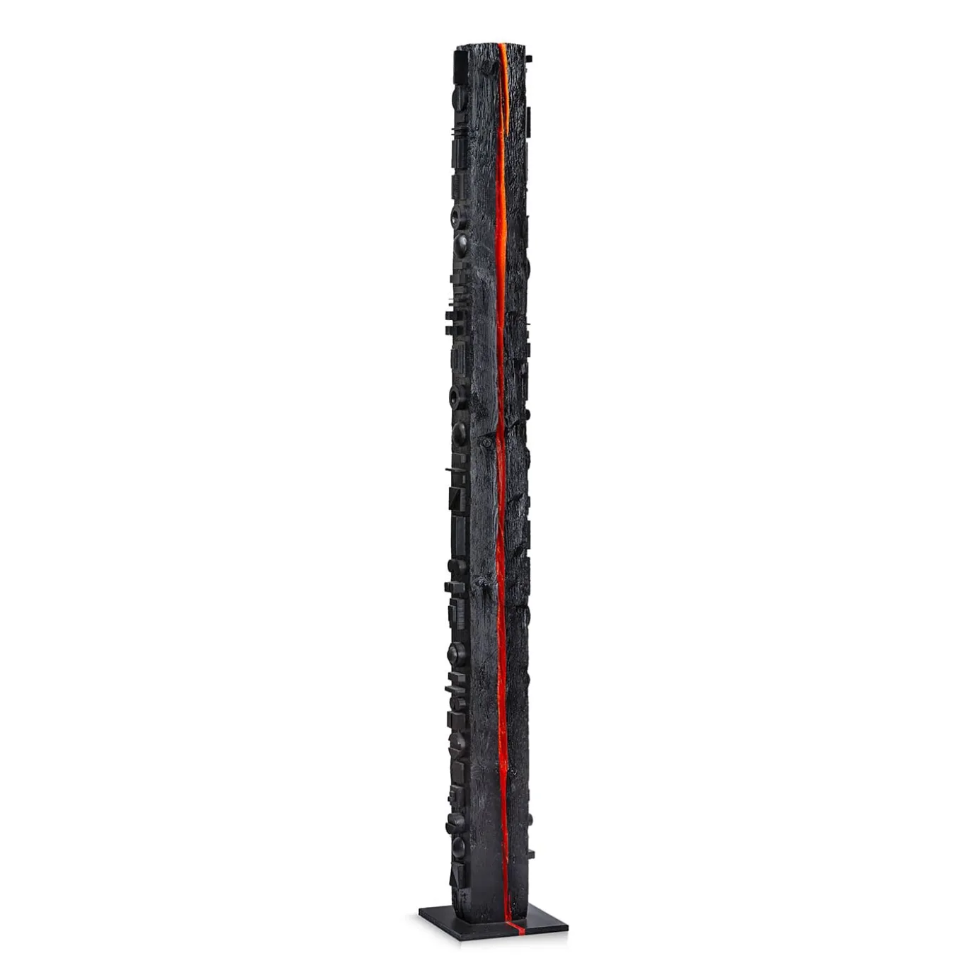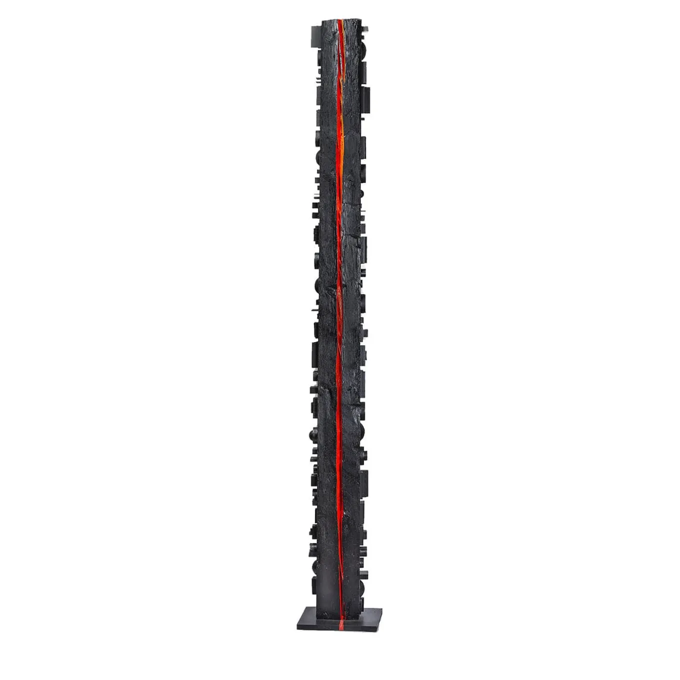 In 2014 Gianmaria Potenza created “Concetto Spaziale”, a series of works in reclaimed wood, varnished and painted with acrylics. Each piece is striking for the deep natural cracks in the wood, highlighted by the red colour in contrast with the black of the external surfaces.