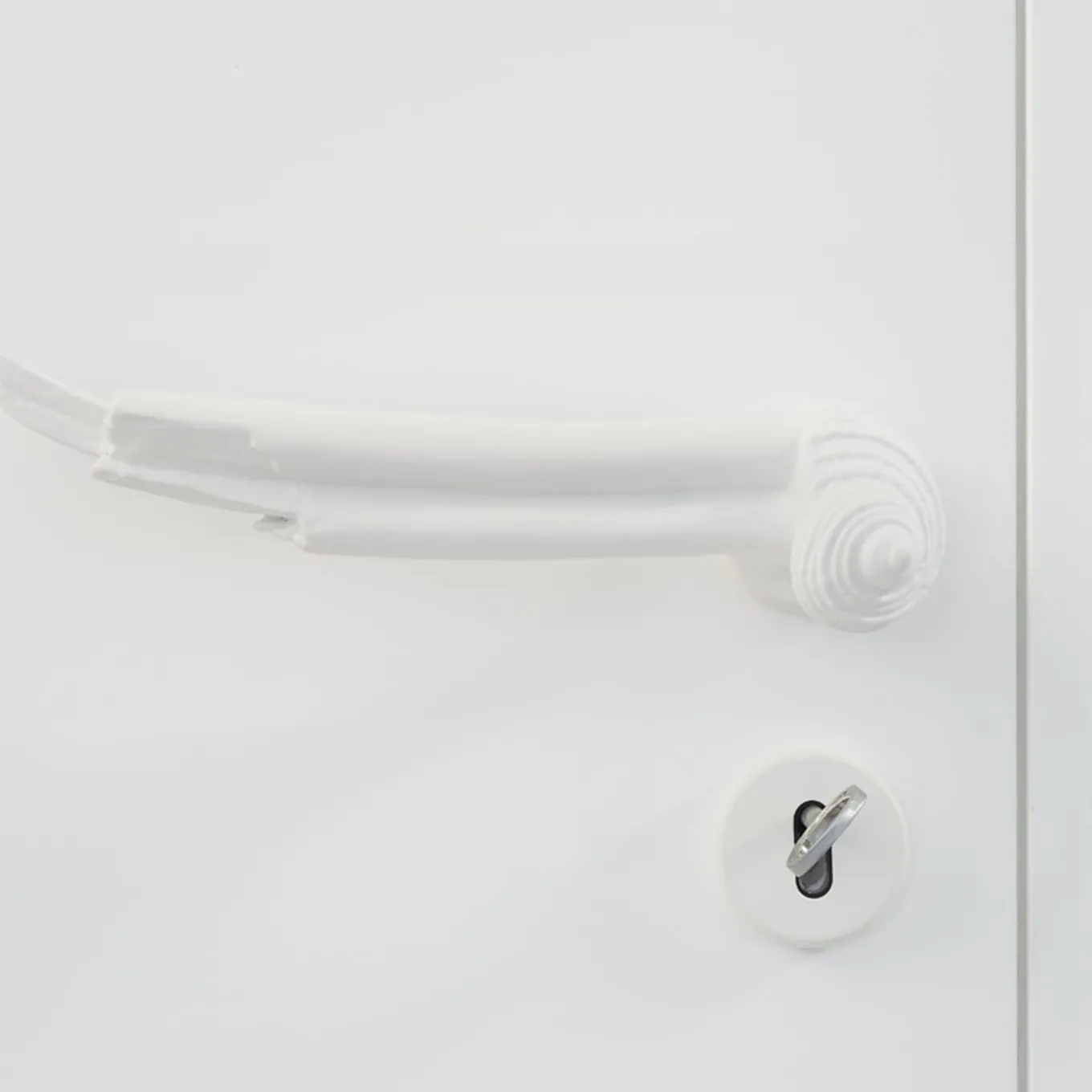 Unexpectedly shaped like a rare seashell found on the shore, this magnificent door handle is the perfect accent piece to elevate a restrained contemporary interior of a seaside home. Handmade of brass finished in a timeless and versatile white tone, it belongs to the Conchiglia series designed by Nicole Valenti.