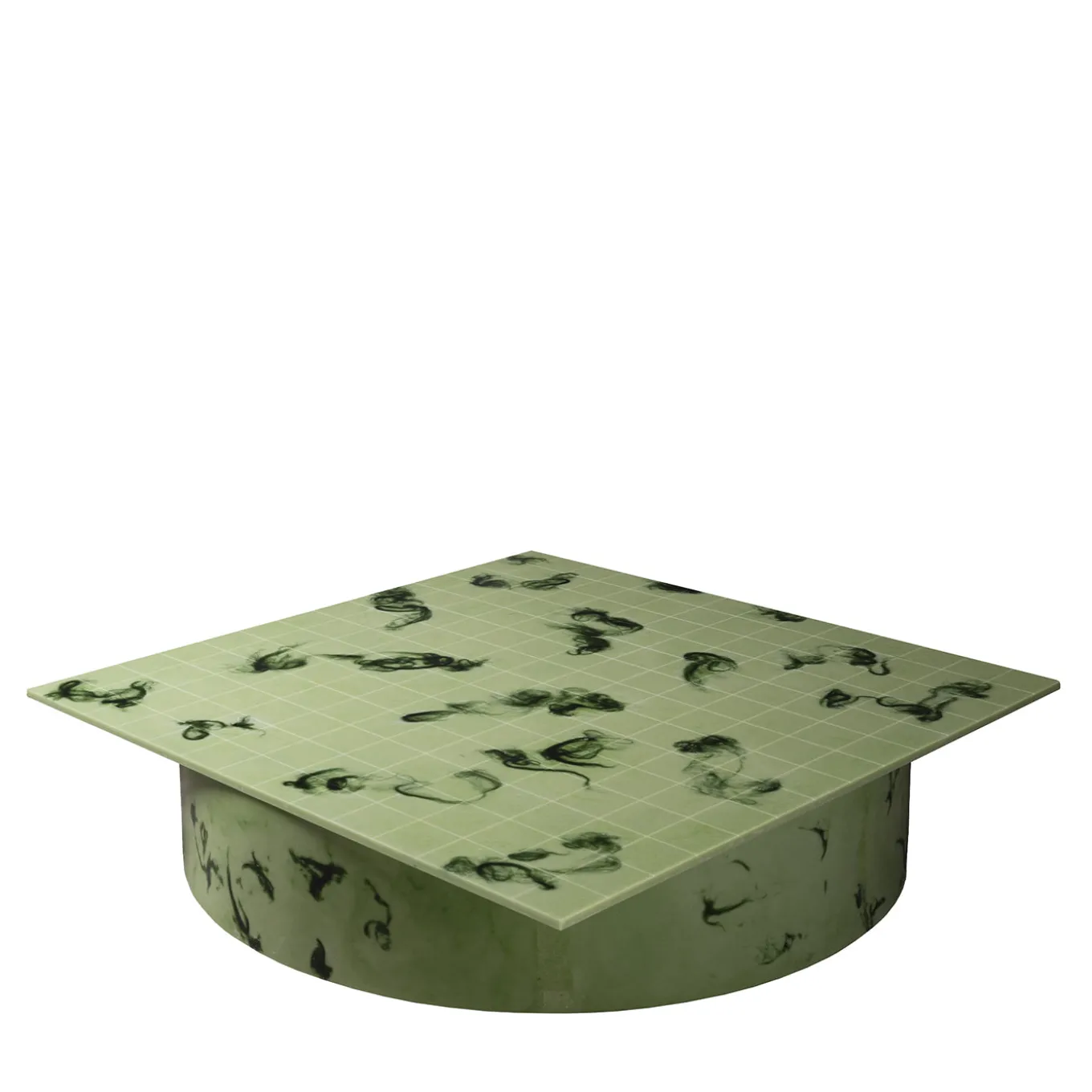 Core coffee table features a geometric grid pattern etched on its square surface, contrasted by organic, swirling dark fibers embedded within. As the other pieces from the Motherboard collection, it is crafter from Marwoolus®, an innovative material created by combining marble dust with wool fibers. The matte finish with a 400-grit texture offers water repellency and practical durability. The piece draws inspiration from circuit boards, symbolizing connection and functionality with its blend of soft curves and defined lines. Slight variations in color, texture, and pattern are a natural result of the materials and handcrafted process, making each piece truly unique. Please contact the Concierge for customization and other size options.