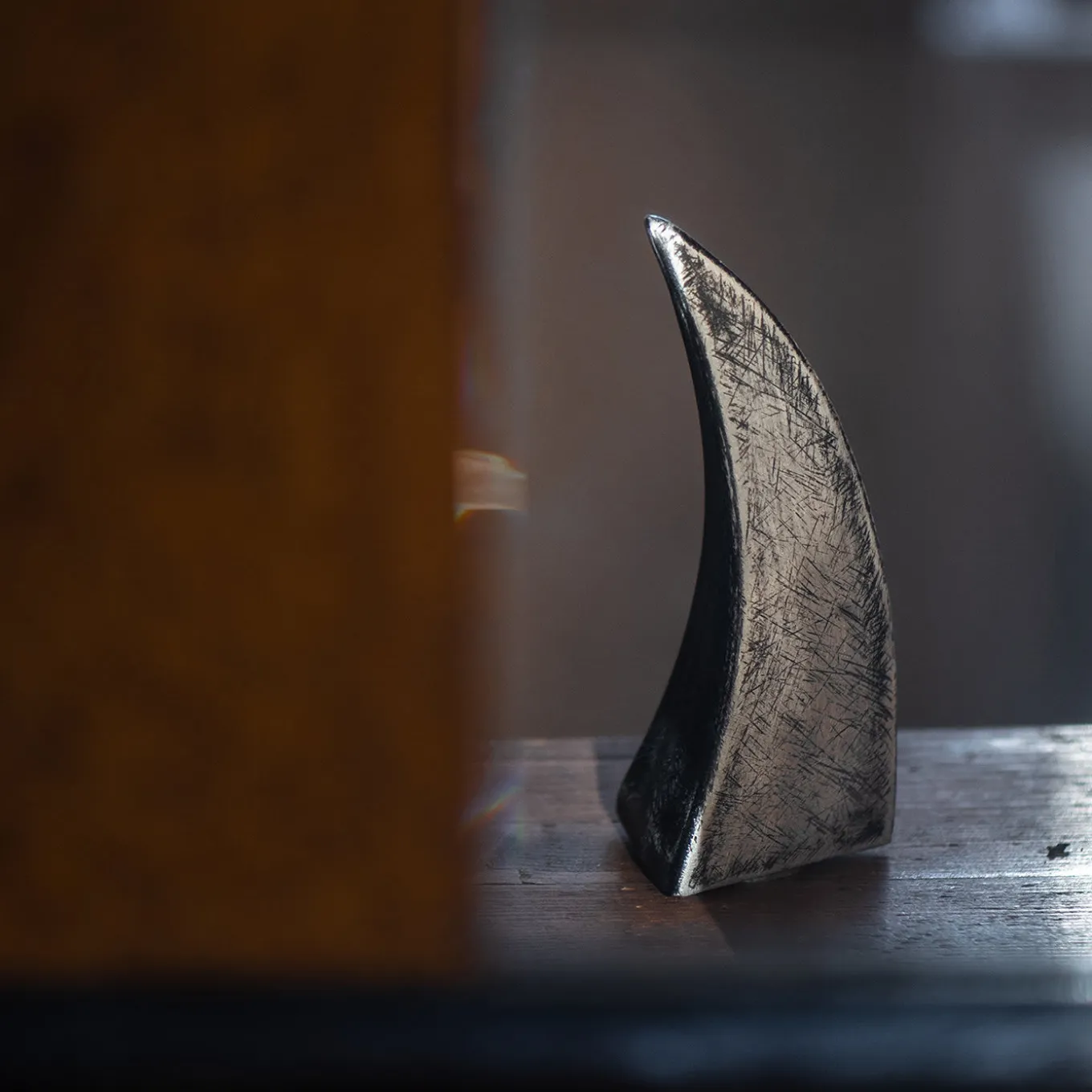 A splendid piece that combines sculptural art with clean functionality, this coat hanger is inspired by the Archi sculpture by Ignazio Romeo. Its horn-shaped silhouette is handcrafted of aluminum fused with the casting technique and finished with black paint partly removed to showcase elegant and modern scratches that make this piece unique.