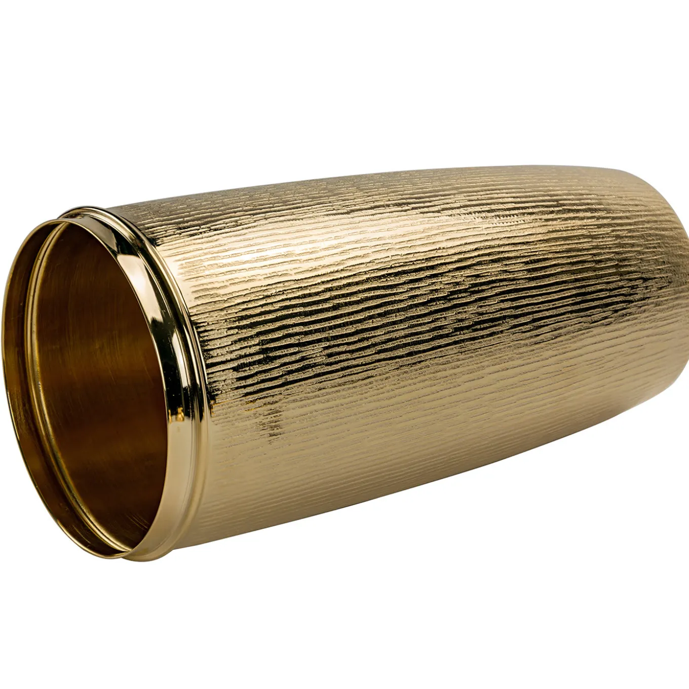 A fine expression of Zanetto’s commitment to craftsmanship and flawless design, this gold shaker is sure to add a glamorous shimmer to any home bar, inspiring an atmosphere of elegance during holiday parties. The Cobbler-style silhouette features three parts elegantly finished with a hammered pattern – horizontal on the dome-shaped lid and horizontal and vertical on the tall tumbler – while the cap with built-in strainer has a smooth and polished surface.