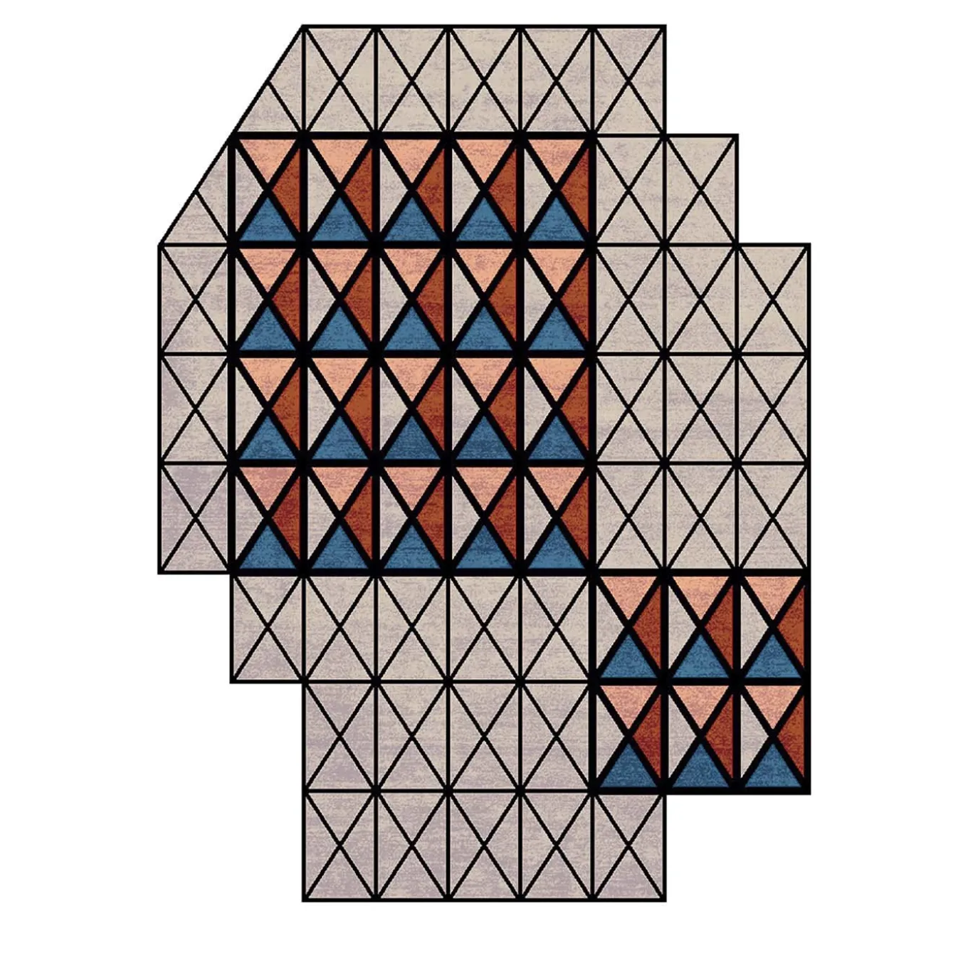 This gorgeous geometrically-shaped rug in its unique geometrical pattern will add a touch of color and style to any home or office space floor. This wool and viscose rug is handknotted into a multitude of rectangular and diamond shapes in beige, dark blue, pink and burgundy.