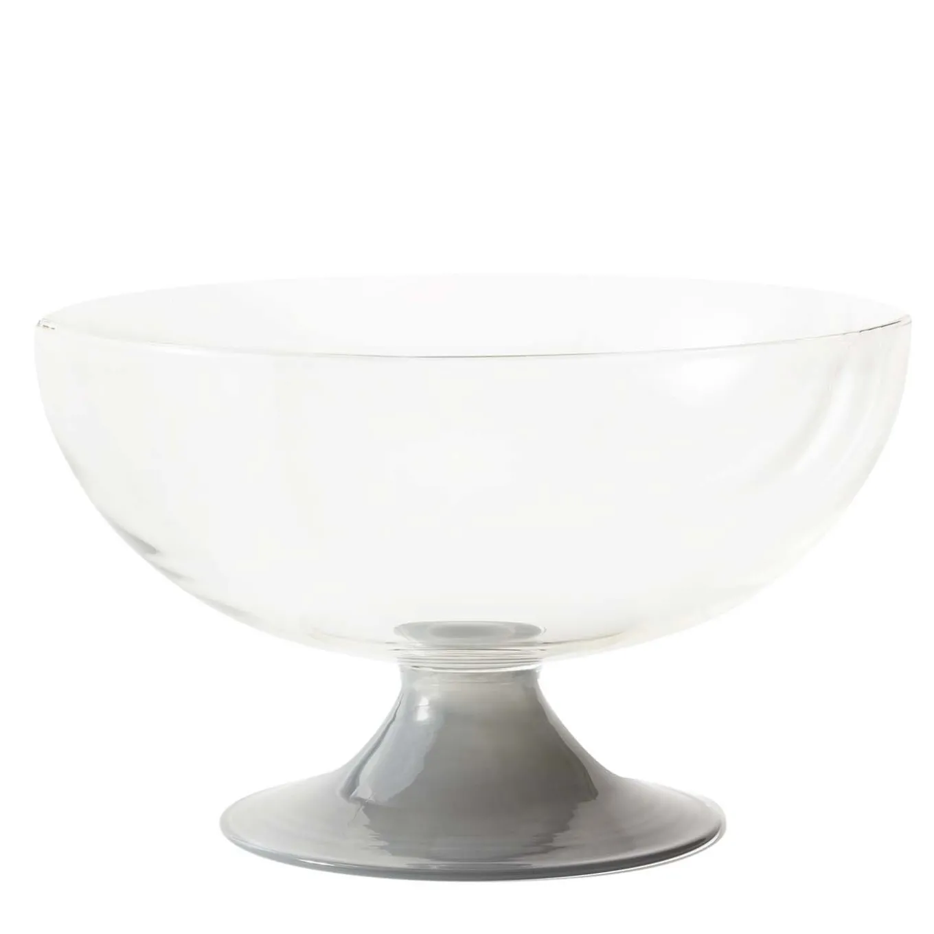 Characterized by a charming and functional design, this large transparent and gray blown glass goblet by Aldo CIbic features a wide bowl shape on top with a short and sturdy support stand. It has an array of uses and will compliment any dining table.