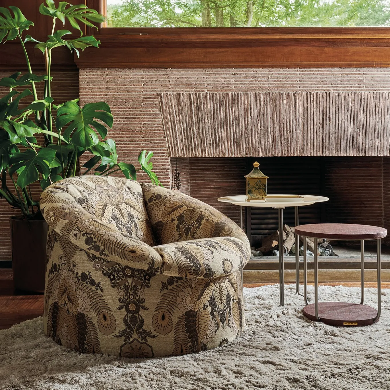 The two founding themes of the fashion Maison Etro are the main peculiarities of the Dahlia armchair, a piece of furniture with lines that take inspiration from Milanese design. Dahlia can infuse a note of harmony and intimacy into any space, pursuing an idea of enveloping and comfortable relaxation. Armchair with structure in solid poplar wood and multilayer pine wood. Seat with elastic webbing and variable thickness high-density expansive polyurethane foam.