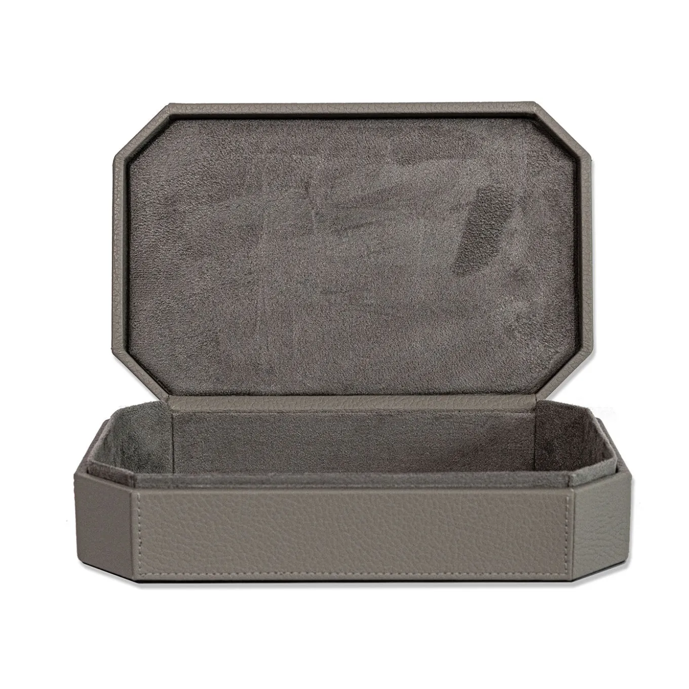 The Del Monte box features a sleek rectangular design covered in soft, fine leather with precise stitching details. Its interior is lined with microfiber fabric to protect delicate items. Blending style with utility, this box offers a refined solution for keeping items organized and secure. Also available in fourteen additional colors; for more details contact the Concierge.
