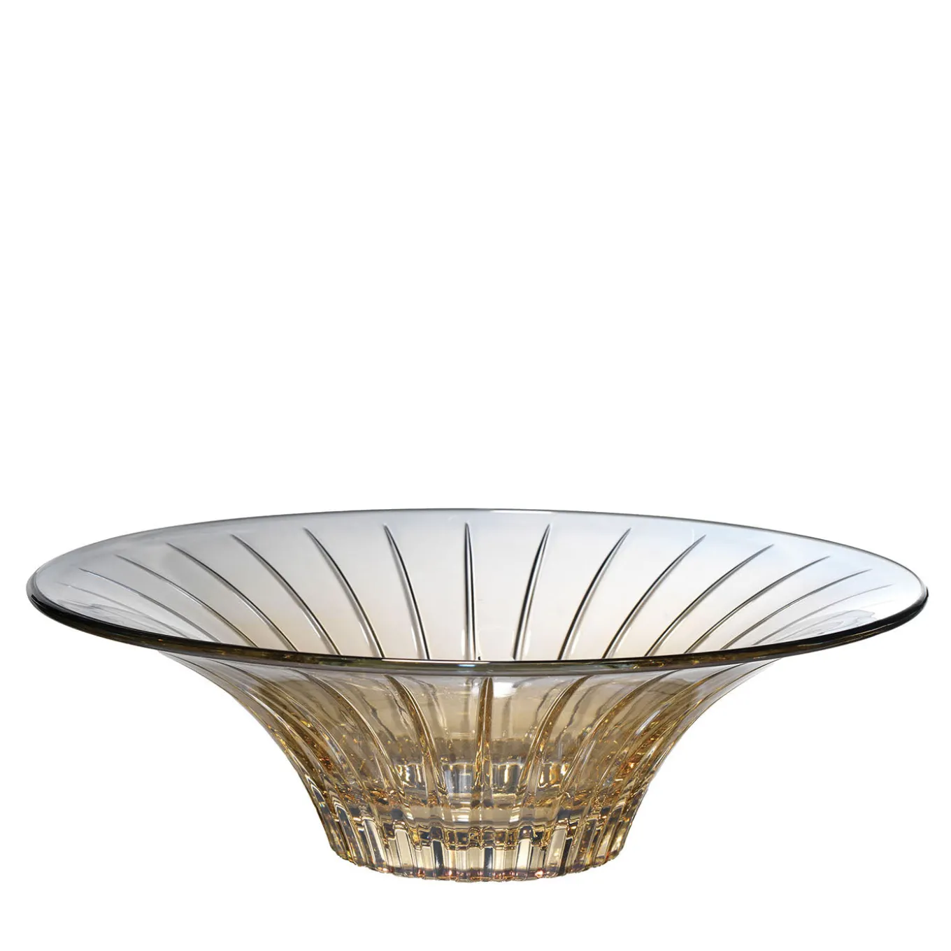 The Domina centerpiece bowl showcases a graceful flared silhouette with vertical ribbed detailing that enhances light reflection. Its medium size makes it suitable for dining tables or consoles, serving as both a decorative and functional element. The delicately tinted pink hue adds subtle warmth, while the handcrafted finish highlights artisan techniques for a refined aesthetic.