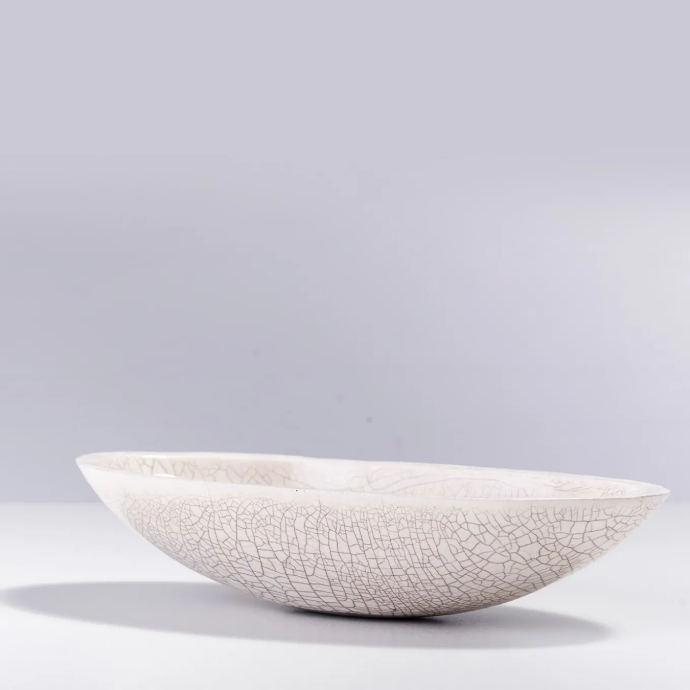 Exuding a sublime and strong visual impact in a singular design handcrafted following the Japanese raku pottery technique, this oval bowl is named after the internationally renowned and appreciated Japanese dish. A unique, sophisticated accent piece for an elegant interior setting, it will make an exquisite gift idea for a connoisseur of Japanese art and craftsmanship.