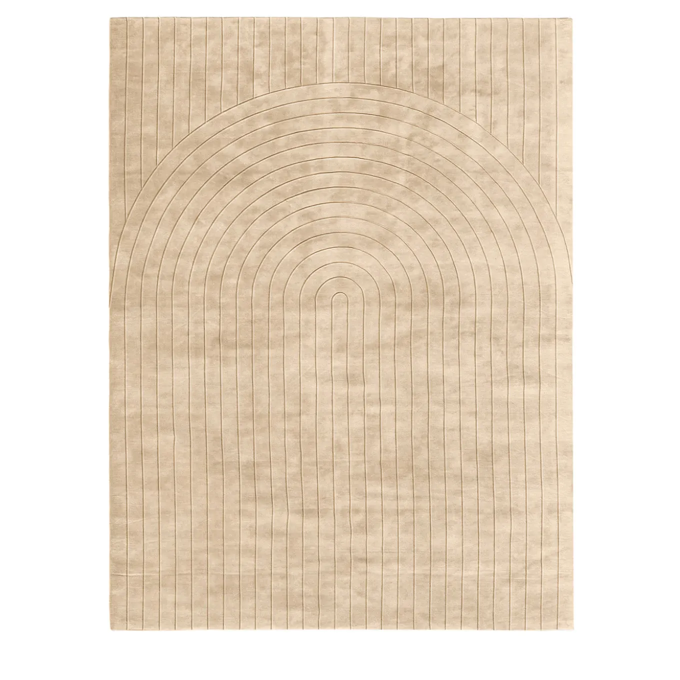 The Dune rug features a refined geometric pattern with subtle raised lines, adding texture and depth to its neutral tone. Crafted entirely by hand using 100% New Zealand wool, it offers a luxurious feel alongside lasting durability. Suitable for enhancing a variety of interiors, this rug combines timeless elegance with contemporary design influences. Made in India.