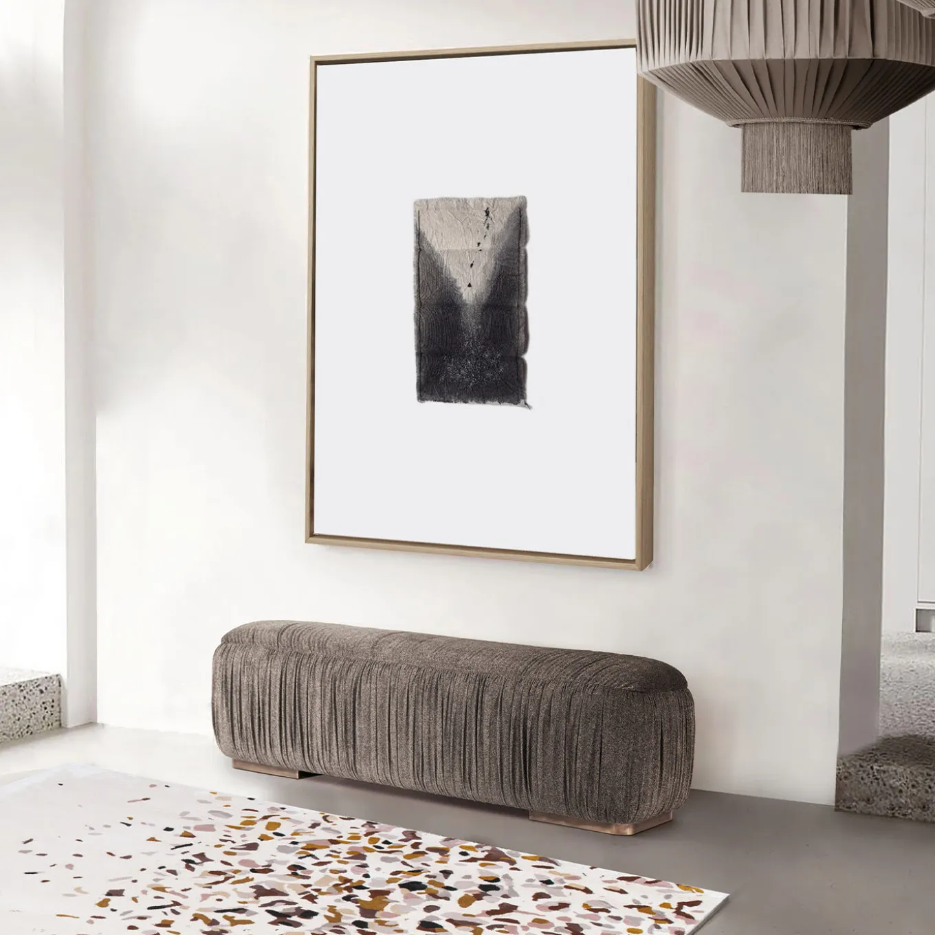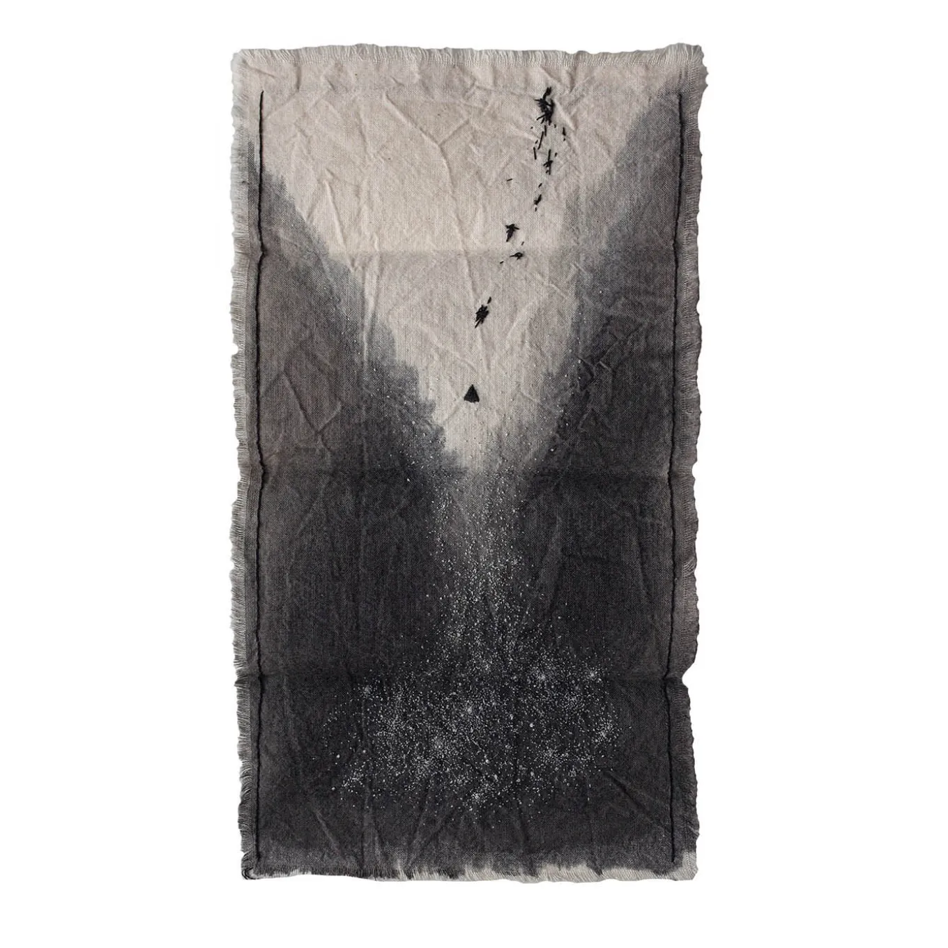 Conceived as a unique talisman stimulating towards a greater vision, this painting is an authentic double-sided artwork where the cotton canvas boasts a stunning decoration combining ink and embroideries. A universe of stitches, where the needle seems to soar to a unifying role, distinguishes the piece. Each piece is unique. The frame is not supplied.