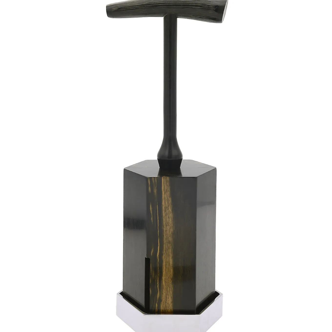 This magnetic knife block is beautifully crafted from solid ebony wood. Its springbok horn and silver handle is equipped with an internal knife locking system to ensure optimal safety during transportation. Complete with six matching steak knives, handcrafted by Roberto Ottonello, the Ebony Knife Block makes a refined, ultra-functional addition to your kitchen.