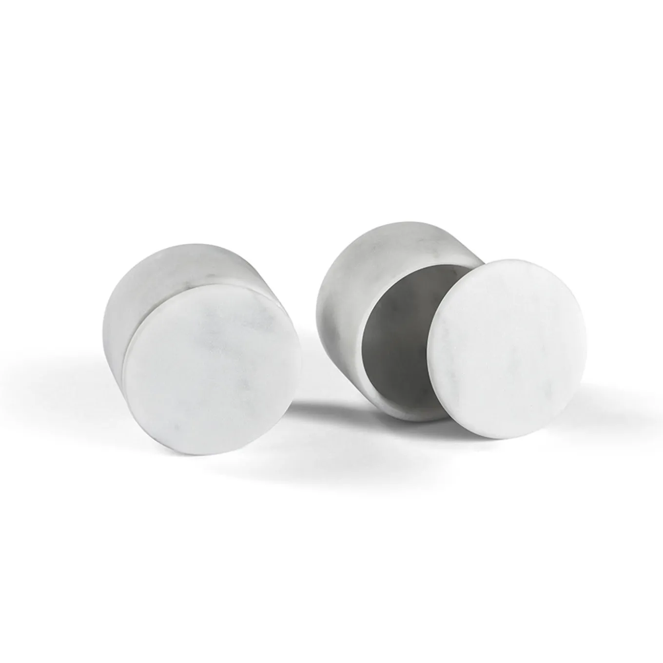 The marble salt and pepper set of the Ellipse collection is the perfect expression of John Pawson’s minimalist style. The two small, essential containers have round and smooth edges and a circular lid on top. These elegant kitchen utensils handmade by Salvatori artisans in our Tuscan laboratory display a rigorous simplicity of form, materiality and function.