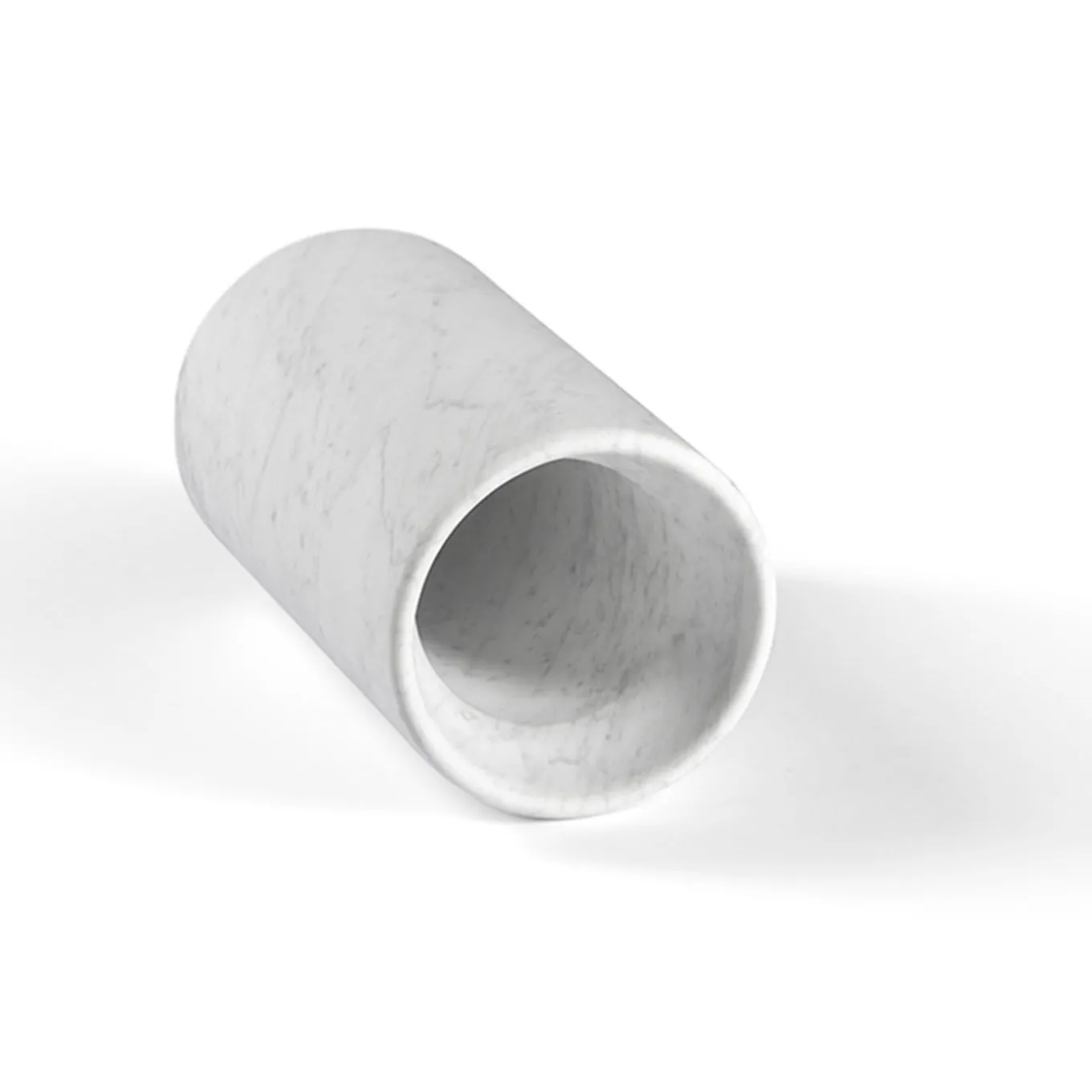This stylish, minimalistic glacette is made from a single piece of pure white Carrara marble, modeled by the finest Tuscan artisans. Natural stone becomes the perfect container to preserve the temperature of a bottle of fresh wine. Each meticulously hand-crafted piece of the Ellipse collection is the emblem of the form meets function philosophy.