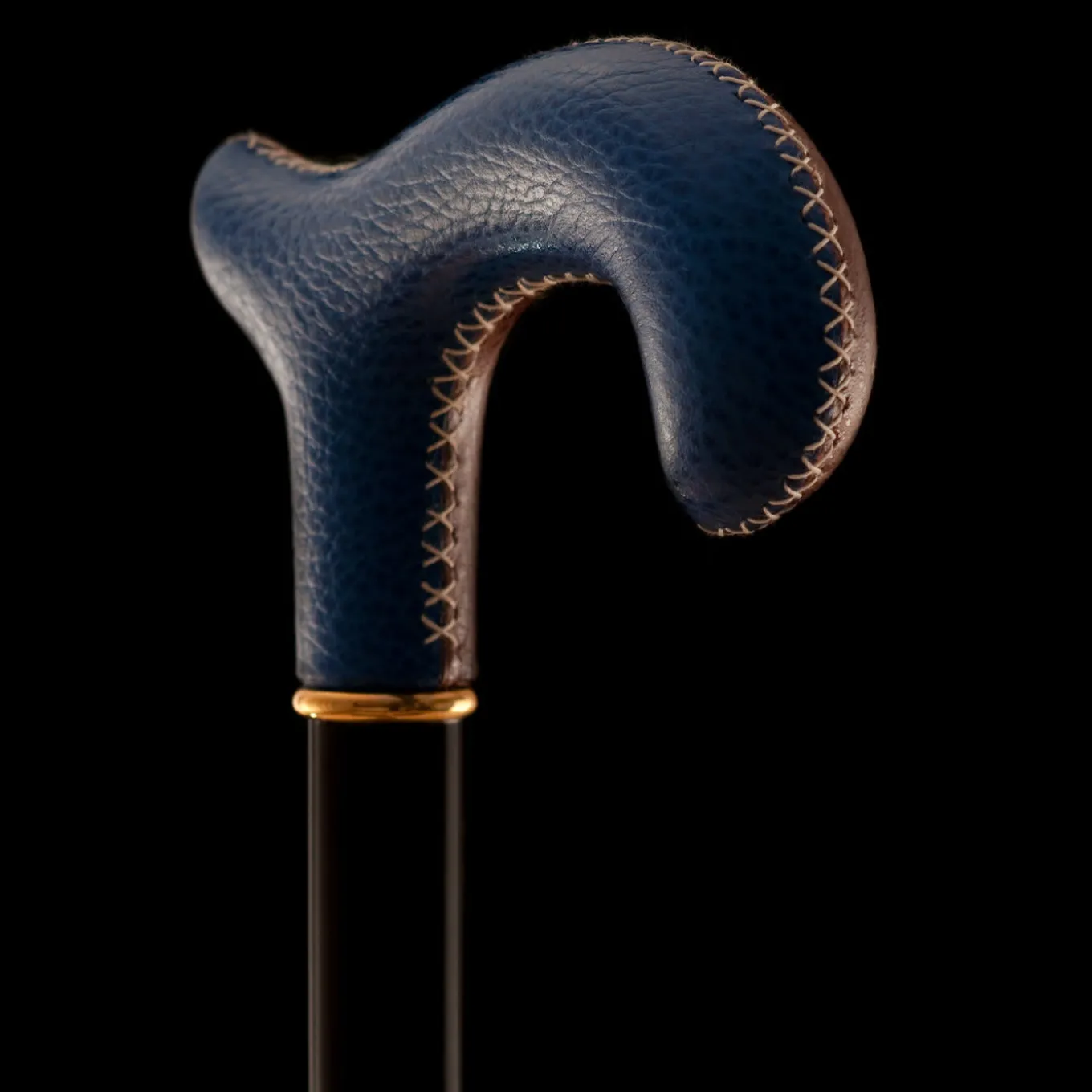 Characterized by an elegant and classic design, this stick features a metal handle richly decorated with elegant patterns embossed on the surface. The conical shaft of this sophisticated accessory is crafted in gloss black beech wood and has a silver-plated brass tip with protective rubber end. This is a collectible item, not to be used for walking.