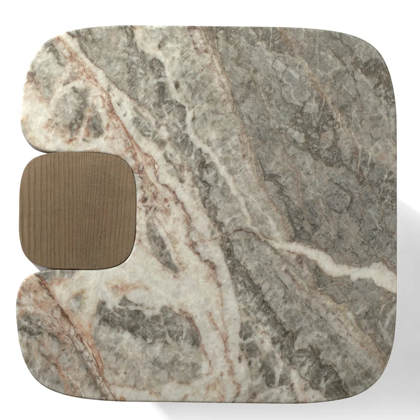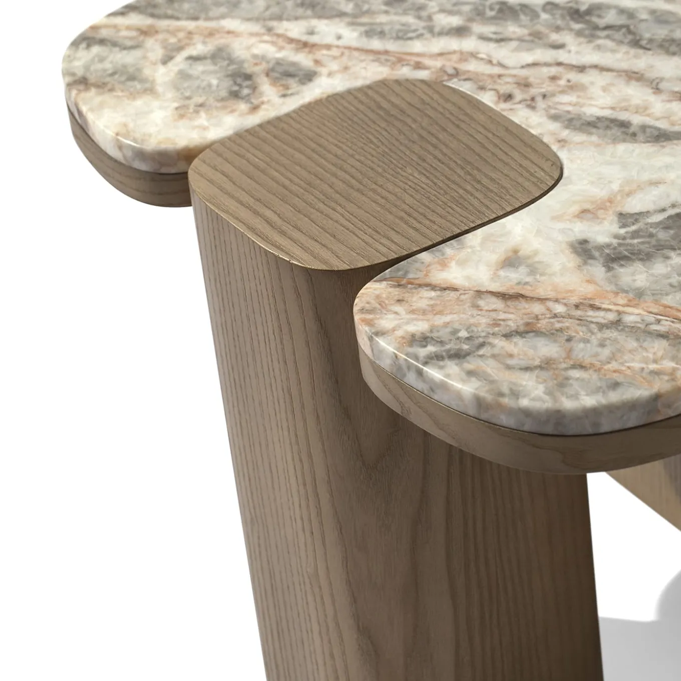 This exceptional rectangular coffee table will give a more contemporary and modern touch to any living room. The structure is entirely in massive ash wood and the marble top suites perfectly with a luxury environment giving a sophisticated effect. Note the detail of the legs that seem to come out from the marble top. Fango finishing. The marble top is Fior di Pesco Marble. Other finishings and marbles are available.
