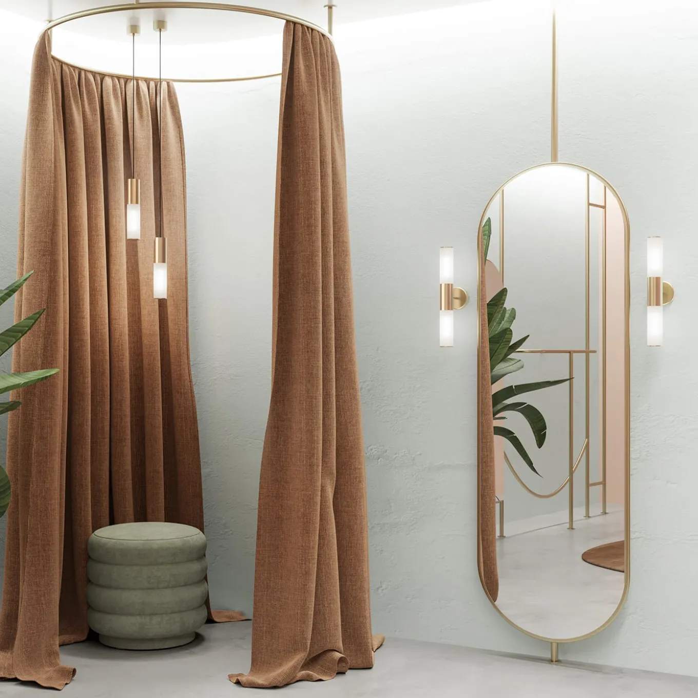As slender and elegant as a ballerina, the Étoile collection of indoor lamps features delicate and essential lines. The collection, available with a natural or antique brass and borosilicate glass fixture, consists of a pendant lamp, floor lamp, table lamp and wall lamp.