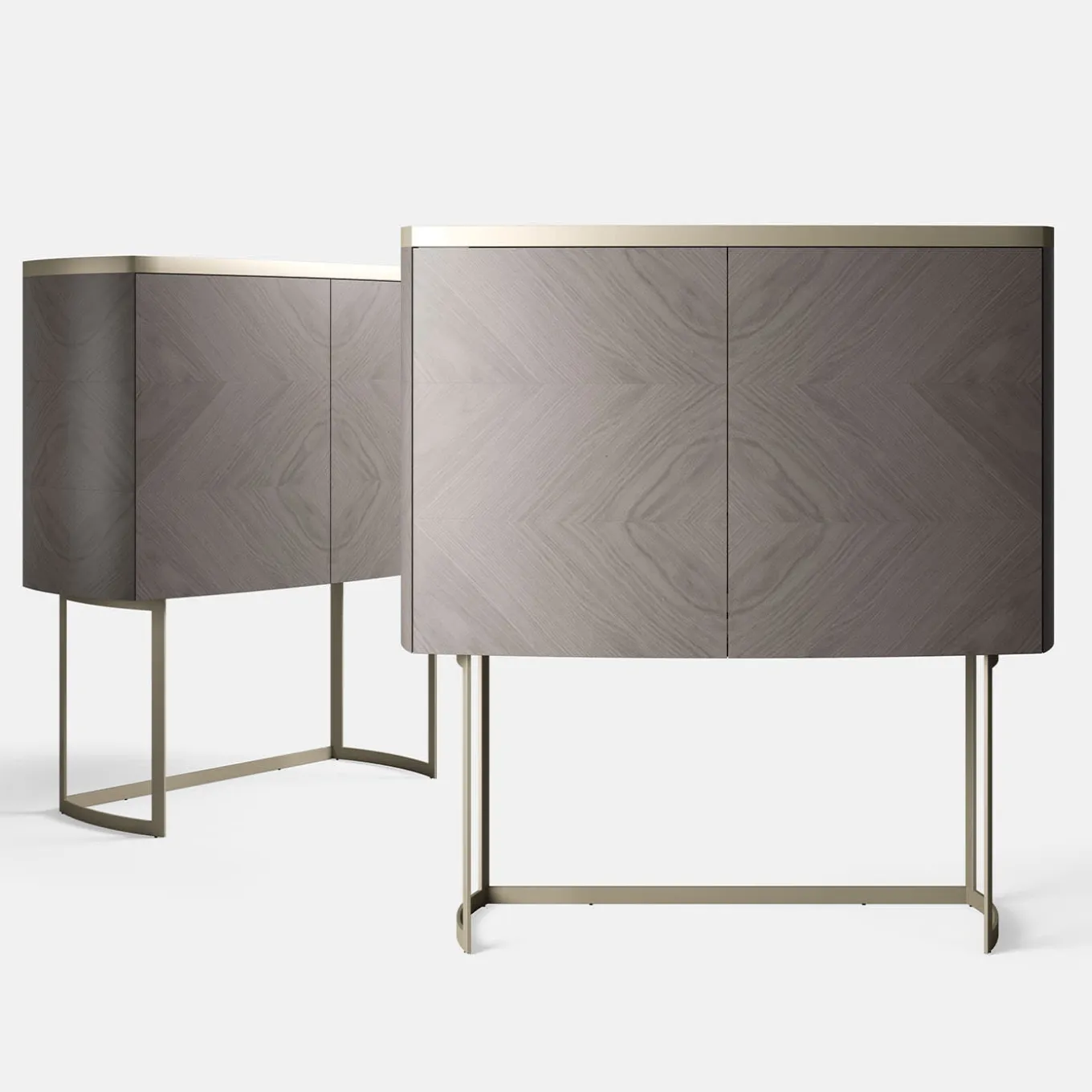 Bar cabinet with a metal frame and base (5 colors). Bronze mirror top and oak essence finish(4 essences).