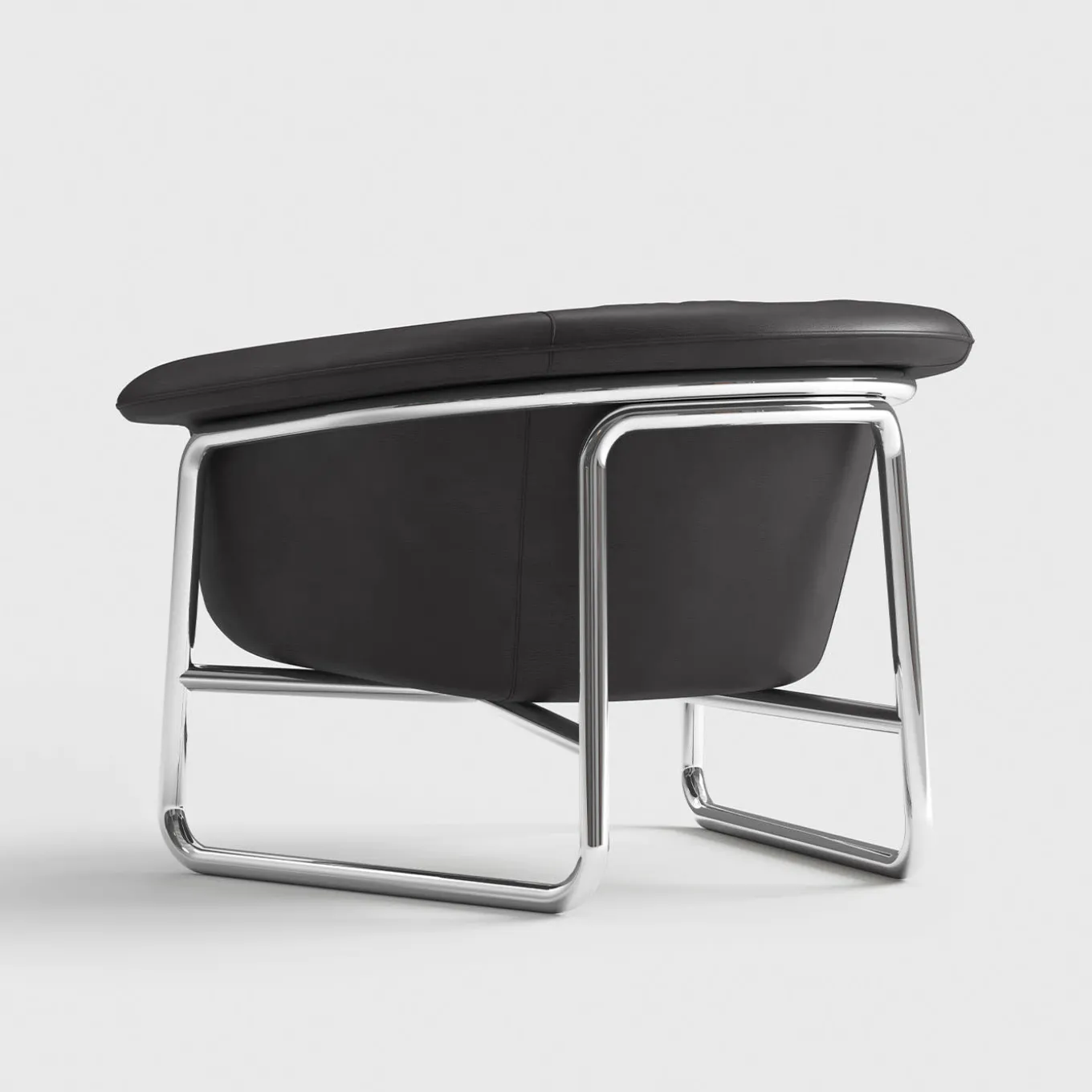 The elegant armchair features a sleek, chromed metal frame that adds a modern touch. It is upholstered in luxurious leather. Ideal for contemporary interiors, the armchair combines style and comfort seamlessly.