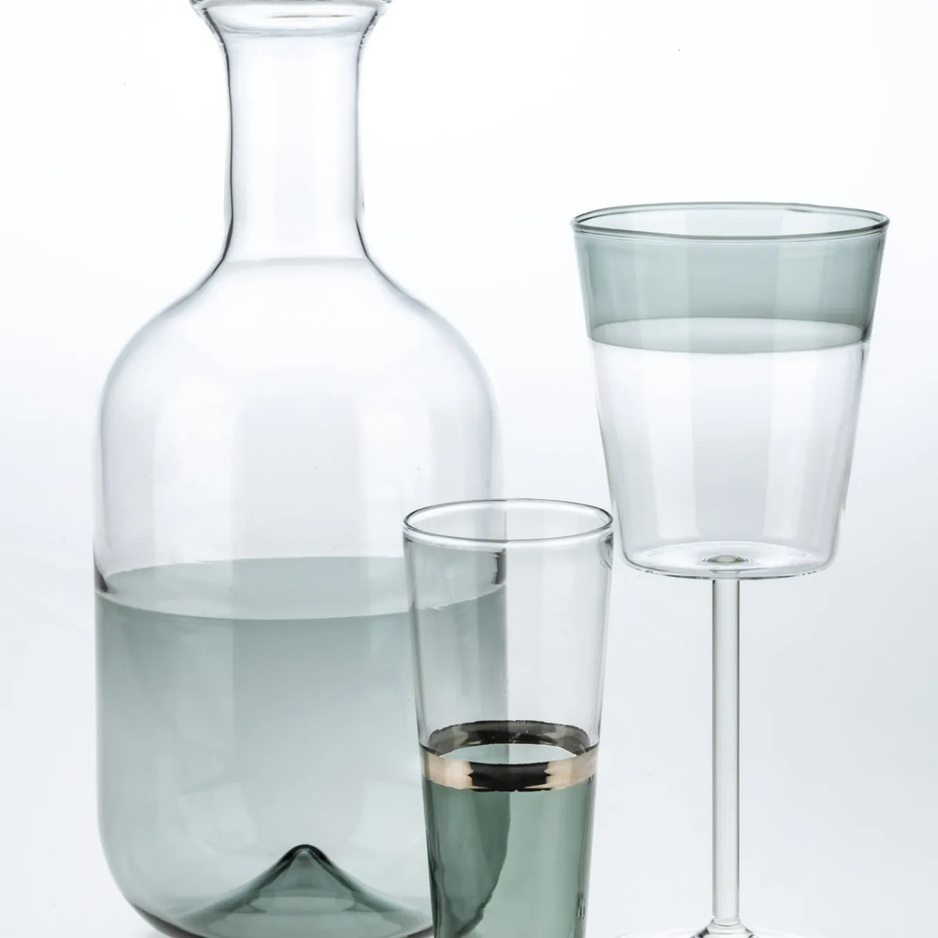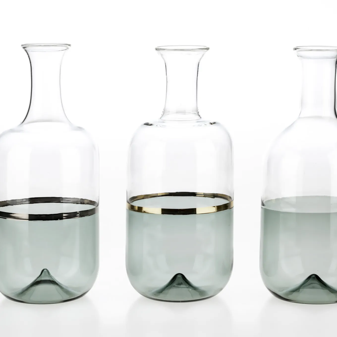 Simply styled with a classic shape, this mouth-blown glass bottle embodies the elegance and charm of the city that gives the name to the collection. A timeless classic that can be used both on an everyday table or on special entertaining events to serve water, juice or soft drinks, this bottle features a light gray base and a clear top. Given as a housewarming gift with any set of glasses from the Firenze Collection, this bottle is an elegant accent piece that will heighten the allure of any table setting.