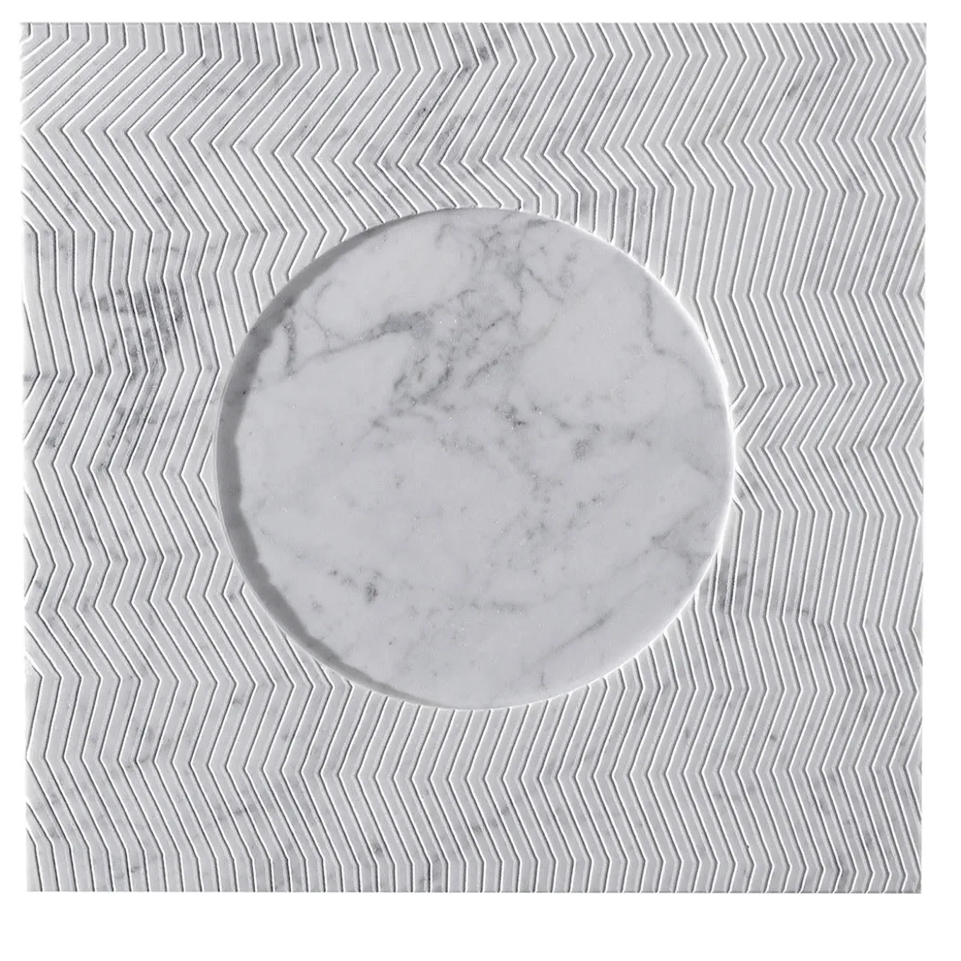 Inspired by the beating heart of the Italian Renaissance, this fine dining plate by Rita Anna Venuta is part of the Piatto Q Collection. Fashioned of White Carrara marble, the plate features a “herringbone” pattern, the same masonry technique used in the construction of Brunelleschi’s dome, a self-supporting spiral technique never before used in buildings. Embracing imperfection as a mark of authenticity, this piece will effortlessly elevate a fine dining experience.