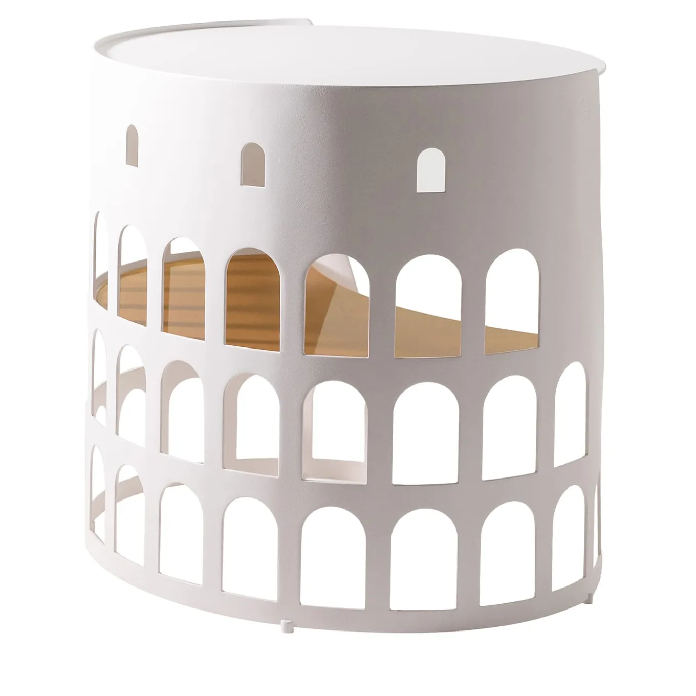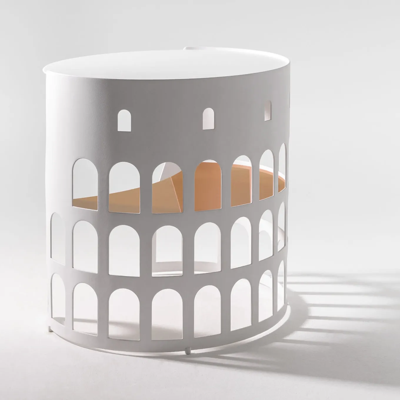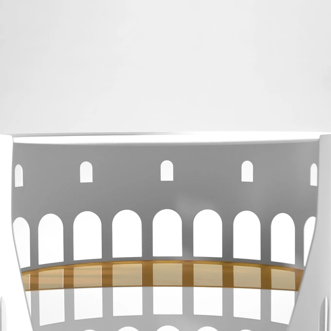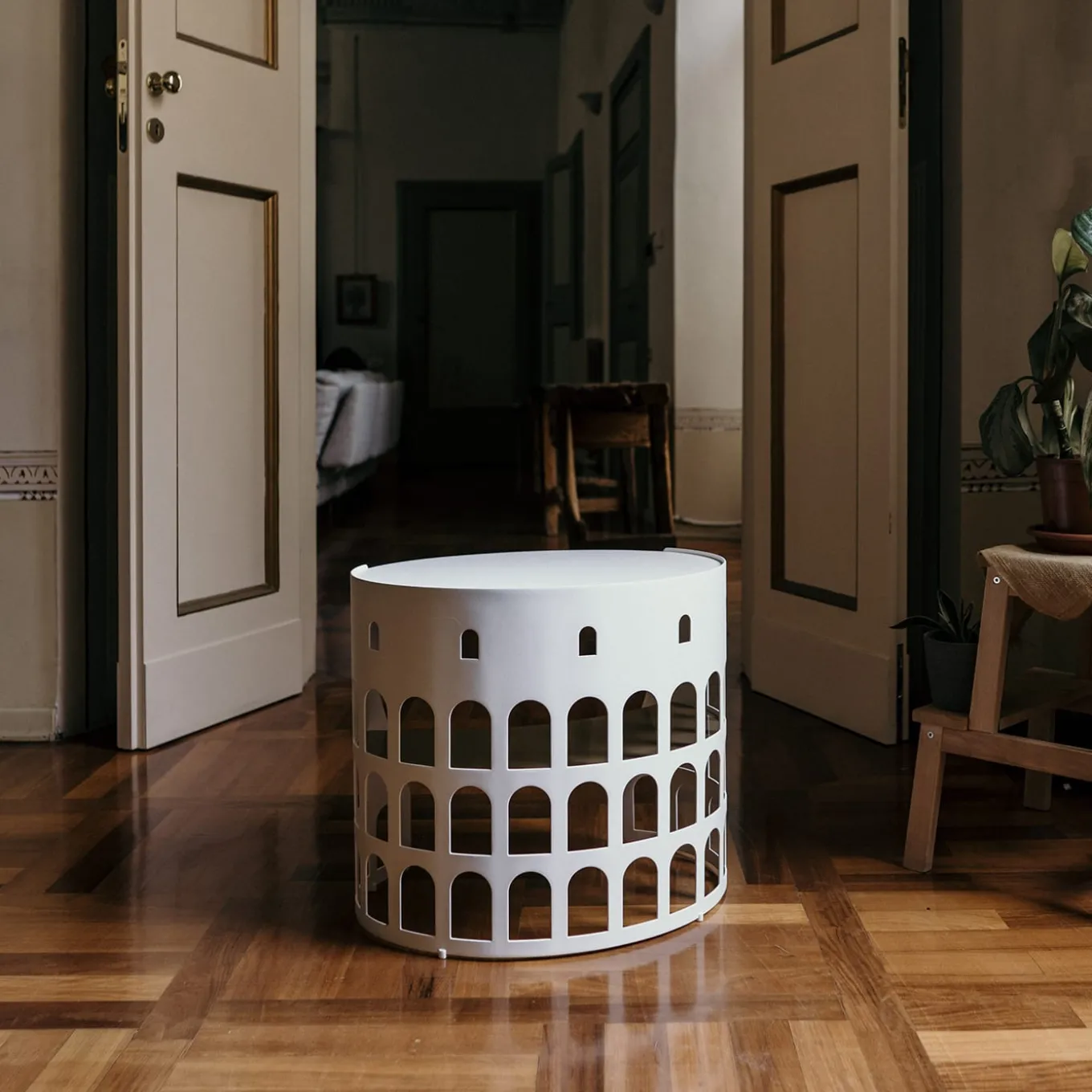Inspired by the timeless charm of the Colosseum, ‘Flavio’ is a coffee table that reinterprets the architecture of the Flavian Amphitheatre in a contemporary style. Handcrafted in matt white powder-coated steel, it features an oval silhouette with arches that recall the striking play of light and shadow of the famous monument. A golden intermediate shelf, hidden between the arches, adds functionality and a touch of discreet luxury, perfect for small decorative items. More than a coffee table, ‘Flavio’ is a style statement that will enhance any room. It is available in other colors, contact the concierge for information.