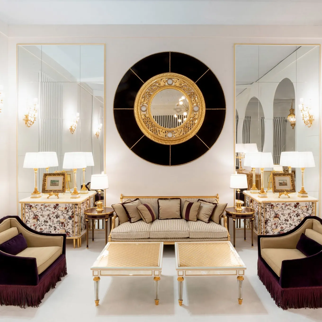 Romantic and luxurious, this refined wooden dresser is sure to infuse any sophisticated bedroom with its poetic charm. A floral motif obtained with inlays of different-color woods emerges from the bright Erable veneer extending throughout the front and sides, while 24K gold plates the bronze profiles and tapered feet marked by an elegant scalloped profile. The top and details are in white onyx.